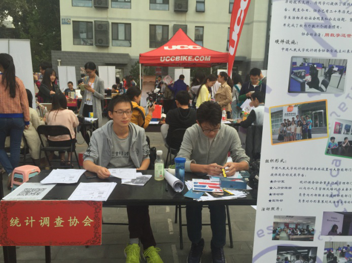 缤纷社团又吐新芽,校园文化落地开花。借着一年一度“百团大战”全校社团招新的契机,统计调查协会2015年招新活动于10月14日在校篮球场旁顺利开展。这次活动不仅展示了社团的风采,也让我们了解到同学们对统计的认识和看法,为协会的发展提供了一些指引。