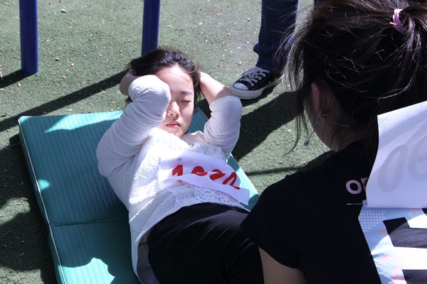 一仰一卧,是与时间的竞赛,是对束缚的反抗,是对自我的超越。在仰卧起坐的比赛中,沈雨薇以每分钟57个的好成绩名列第五,刘馨宇以52个的成绩位列第十四。