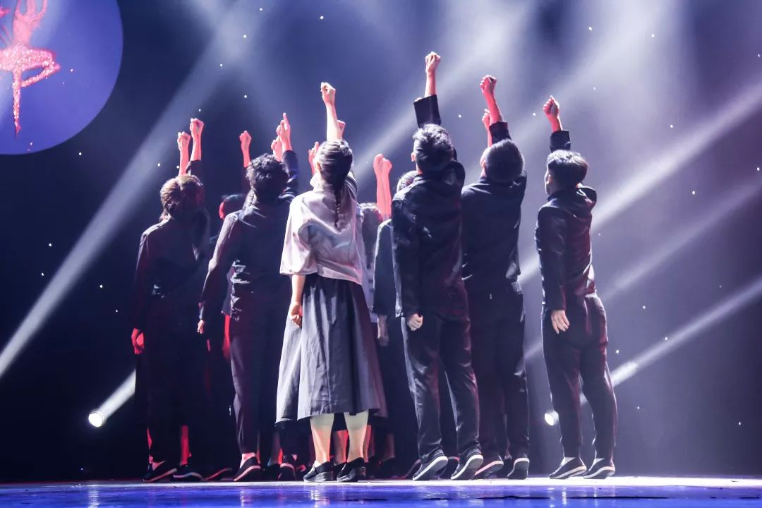 “向上向上再向上”,队员们高举手臂,挣脱向上,渴望找寻未来的出路。急促的节拍,奔忙的身影,队员们拖着沉重的步伐并肩同行,无畏向前,再现了热情高涨、生气淋漓的“五四”之景。