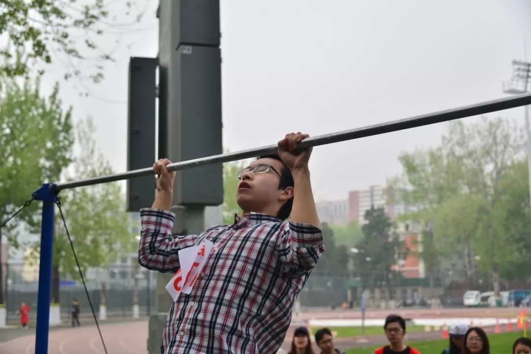 在引体向上比赛中,统院学子积极拼搏,挑战自我。孔令仁以20个的成绩位列第18名,邓翔峻以19个的成绩位列第21名,梁湜以16个的成绩位列第23名。