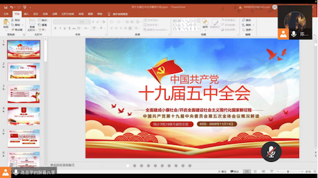 为了切实学习与理解党的十九届五中全会精神,促进党员个人进步同国家发展相结合,11月13日,英国威廉集团官网2019级专硕党支部线上举办“学习全会精神,聚焦前沿理论”主题党日活动。本次活动由党支部书记陈思宇同志主持,30名支部成员全体参与。