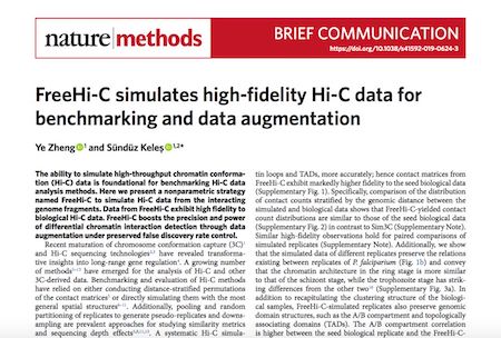 郑晔日前在Nature Methods期刊发表论文“FreeHi-C simulates high-fidelity Hi-C data for benchmarking and data augmentation”,提出了一种全新的Hi-C数据高保真模拟方法,即FreeHi-C,使得三维基因学基准测试更为合理,并且通过模拟数据扩增(data augmentation)显著提高了信号差异分析的检测精度与强度,并且有效地控制错误发现率。