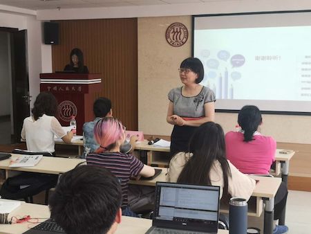 第七组是来自人力资源部的“起名困难组”,他们的选题是“人大校内二手市场调查”。因为临近毕业季,二手交易增多,他们考虑到可行性,选择调查人大校内的二手市场。“起名困难组”通过问卷星的方式获得数据,使用Excel和SPSS分析交易折价率、交易金额与物品类型等数据,发现二手交易集中为小金额的日用品和学习用品,并且人大校内二手交易市场是存在一定潜力的。随后,吴老师对具体的数据提出了问题。蒋妍老师肯定了该组建模的尝试,但是由于分工问题,纸质版报告和ppt展示有一定差距。