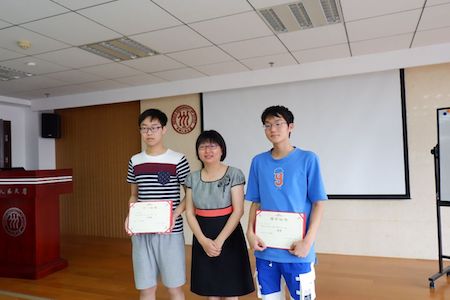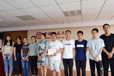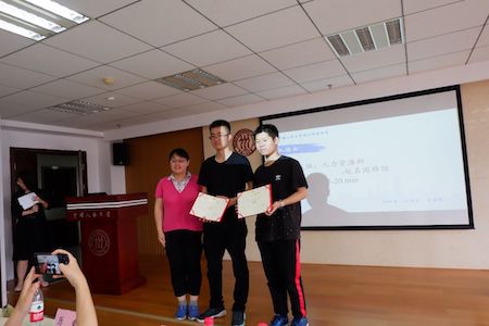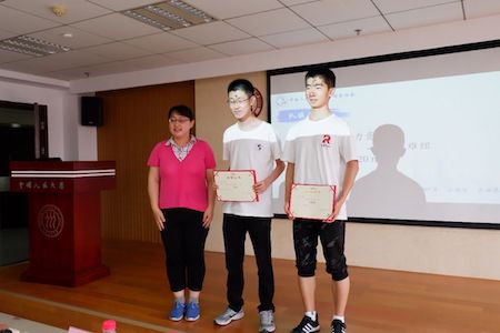 吴翌琳老师为获得优秀奖的“打消师兄谈恋爱意愿组”、“起名困难组”颁奖