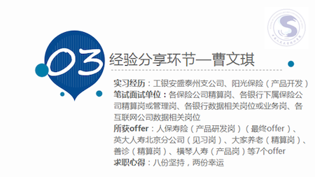 公务员方向的话建议先选地区再选岗位,同时要记住公务员不是赚钱的职业,做繁琐的工作需要一点情怀。今年统计专业能报考的岗位变多,如中国人民银行、财政部、国管局、商务部等。同学们可以通过多个渠道报考,如选调、国考、省考等。