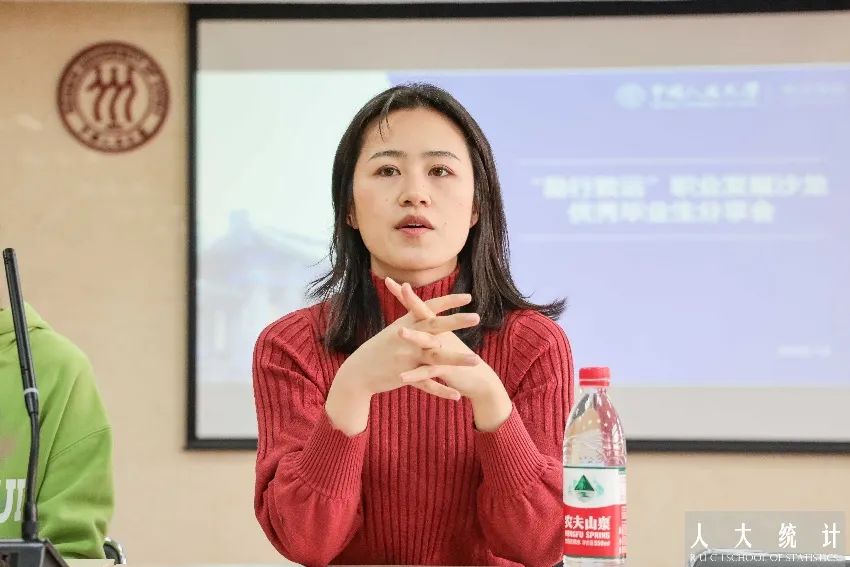 在分享会的现场提问环节,参与分享会的同学们分别就实习和求职方向、面试技巧、专业技能等方面向嘉宾们提出自己的困惑,三位嘉宾耐心细致地解答了同学们的问题,并鼓励大家将统计学知识与其它行业密切结合,拓宽自己可能的就业途径。