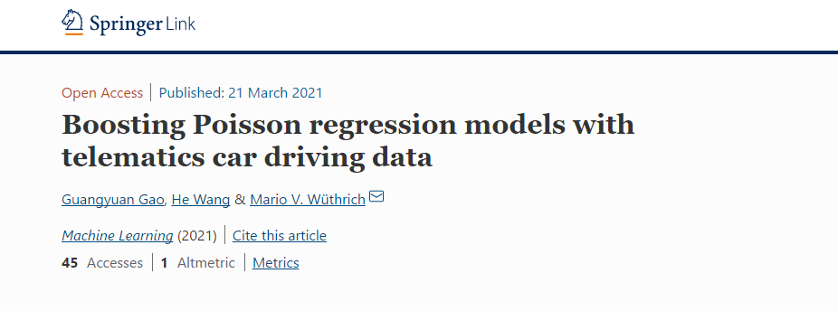 公司副教授、应用统计科学研究中心研究员高光远在《Machine Learning》发表论文。该研究提出了两种数据驱动的神经网络对车联网数据进行自动特征工程,同时提升车险索赔频率的预测模型。实证发现,低速状态下的急减速更容易造成事故,该研究量化了此驾驶行为风险因子,并发现其与传统的精算风险因子互补,如地区、年龄等。