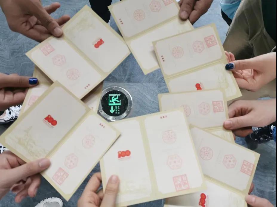 参观完毕后,大家排队来到图书馆一层大厅的咨询台,在学习护照上打卡盖章留念。