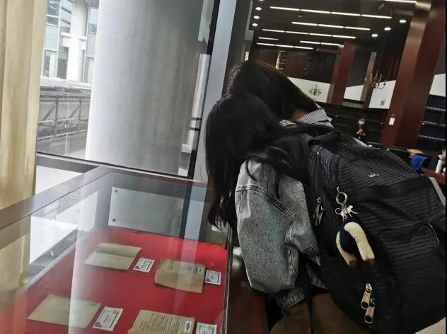最后,大家前往四层古籍阅览室,参观人图馆藏红色文献展。这里陈列着《论联合政府》、《论人民民主专政》等革命领袖的经典著作和《人民的大学——华北联大介绍》等人大校史文献。大家在泛黄的书页中回忆那段从烽火中走来的峥嵘岁月,追寻和感悟人大的红色血脉。