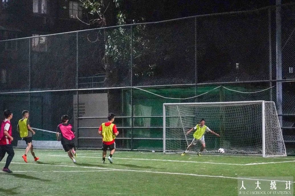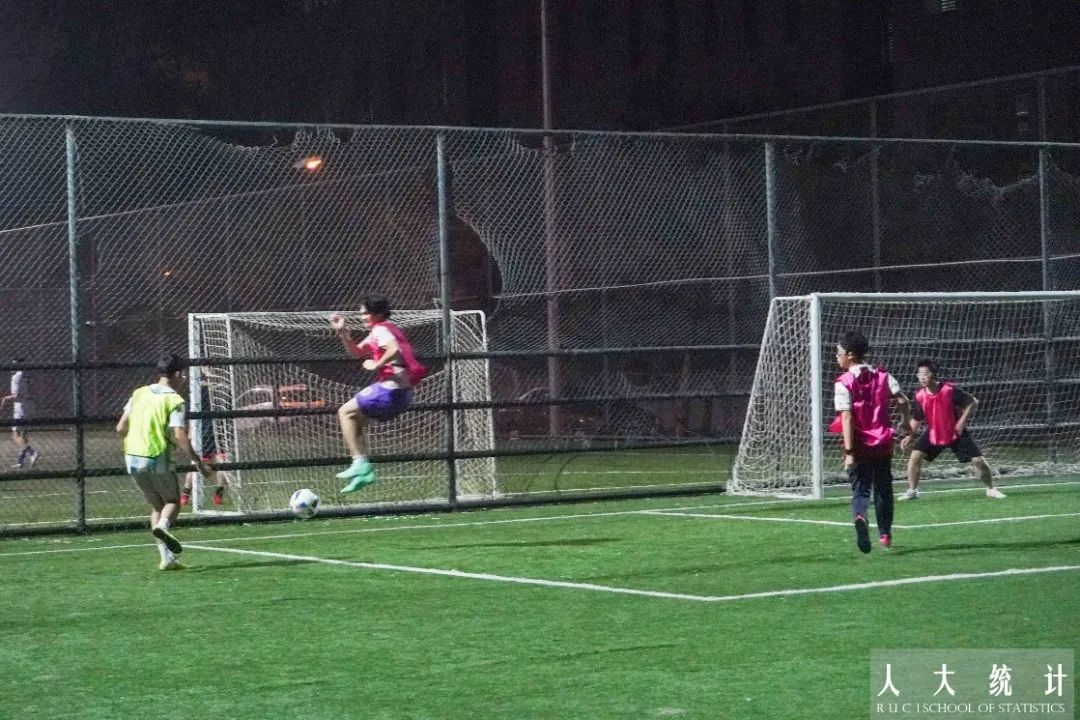 下半场比赛交换场地,双方更是“针锋相对”。绿队一脚攻门打高,红队也回应一脚“飞机”。双方都有男同学因为“动作过大”而领到黄牌,但女同学在下半场发挥出色,接连得分。最终,随着主裁判一声哨响,双方友好地结束了这场新生友谊赛。虽然不计比分,但是每位同学都非常认真地投入到这场比赛中。