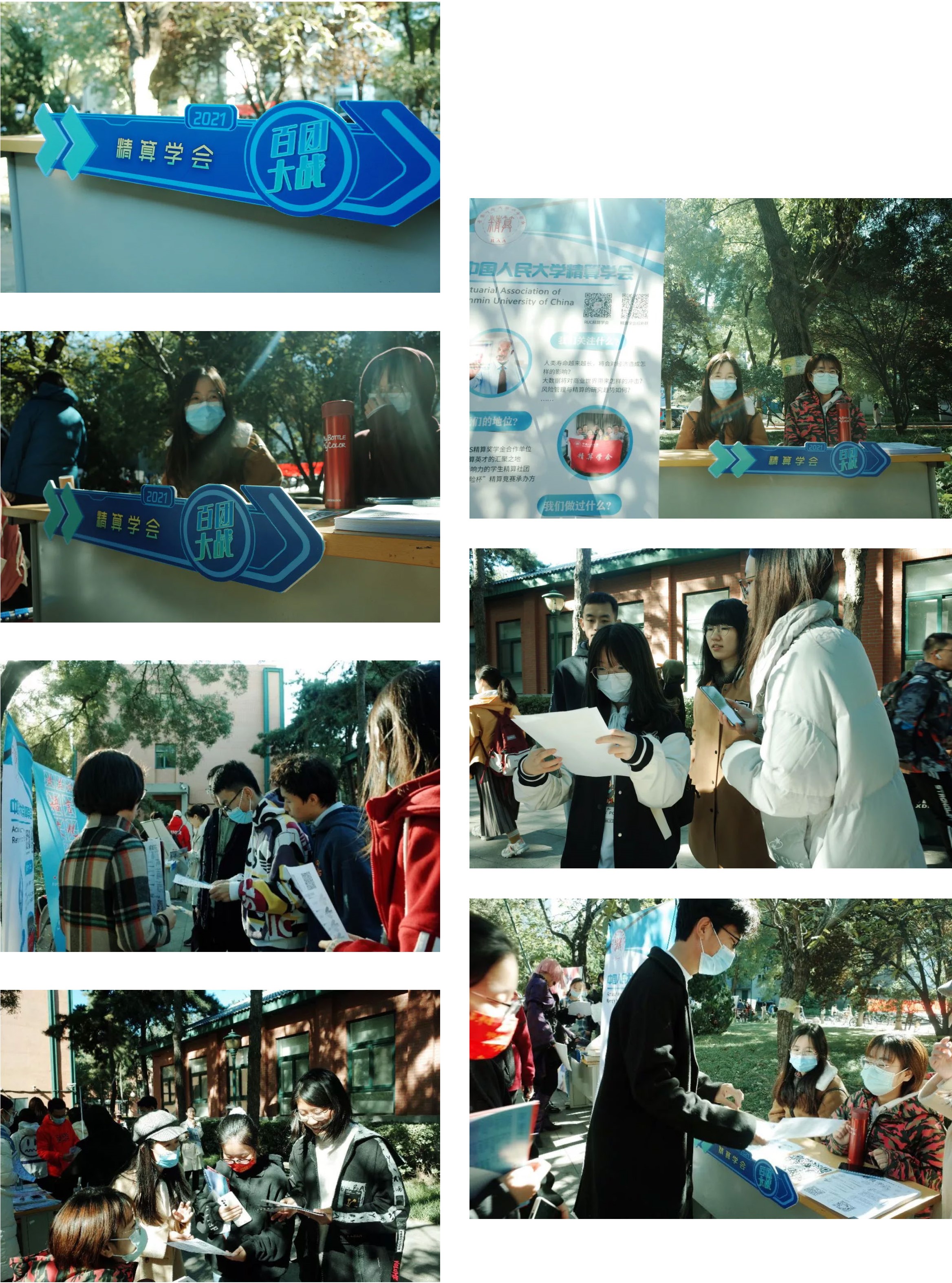 精算学会的招新展台位于员工活动中心广场上的13号展台。新一届精算学会的同学们用心布置了摊位,准备好了宣传资料,在一声声问候与传递中,许多同学驻足观看、咨询。在现场,学会的同学们针对大家的问题,对精算学科的主要应用领域,精算学会活动的内容、形式和频率等进行了详细说明。许多同学在认真了解精算学会之后,满怀兴趣地关注了学会公众号并扫码加入了招新微信群。