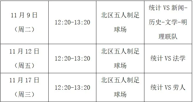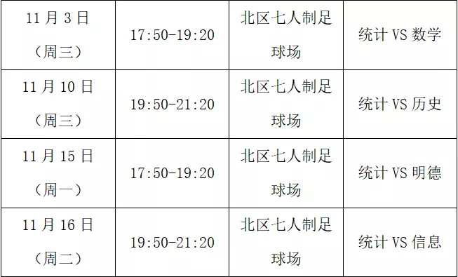 11月3日起,北区足球场,观赏激情绿茵,等你来一起为统计呐喊助威!