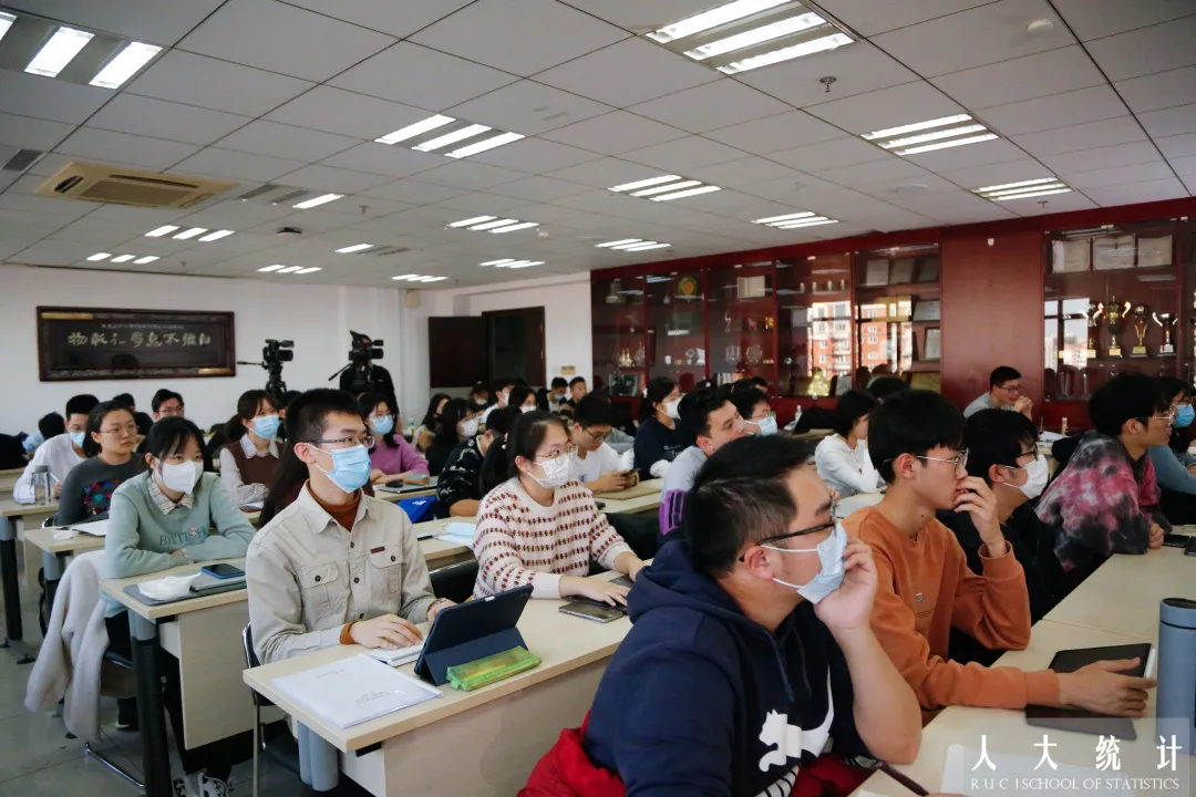 第四,提升应对挑战的能力。实现第二个百年奋斗目标新征程要求青年学子必须练就过硬本领、担当时代重任。易丹辉从学习生活实际出发,阐述了能力的定义及提升能力的重要性,并进一步指出统计专业员工应提升自我评价、自我控制、自我管理等基本能力,培养解读数据、提取规律等专门能力,并用丰富的案例强调了传统统计学在大数据时代下的作用,旁征博引,为统计学子上了难忘的一课。