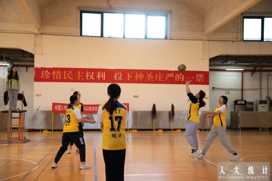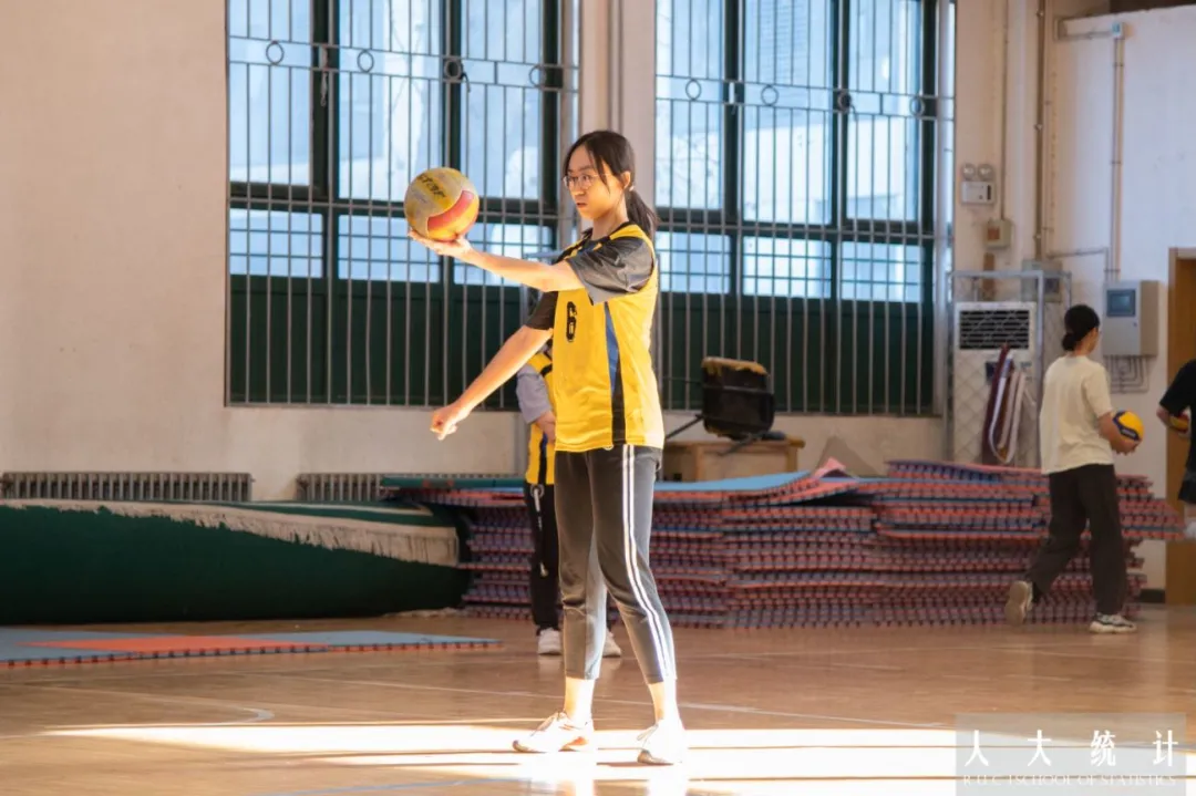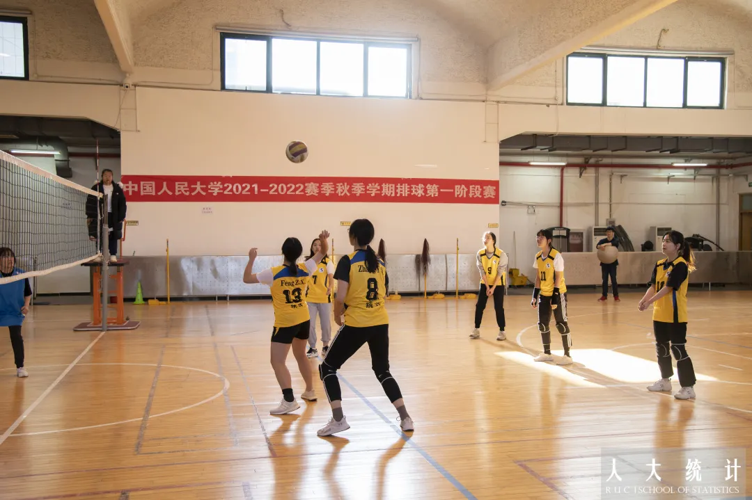 12月1日中午,2021-2022赛季女子排球联赛在拳道馆火热进行,统计女排首次小组赛对战劲敌财金女排。上半场经过激烈的比拼,统计女排12:25落后。下半场,统计女排调整状态、冷静应对劣势局面,以14:25的比分结束比赛。最终,统计女排0:2惜败。