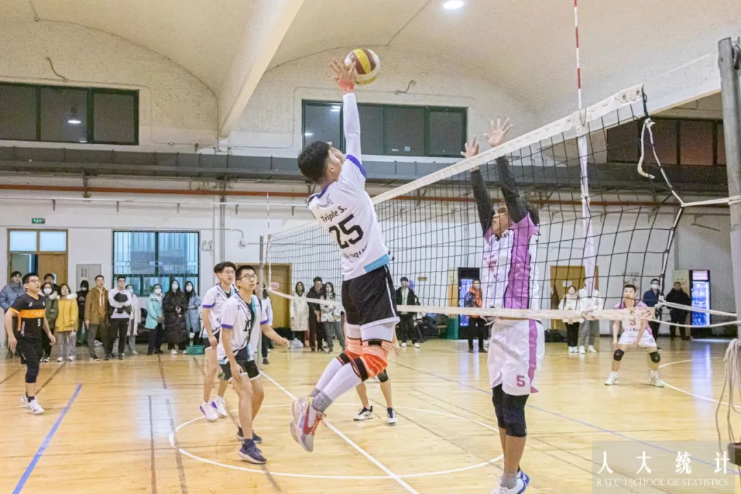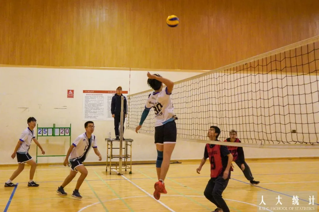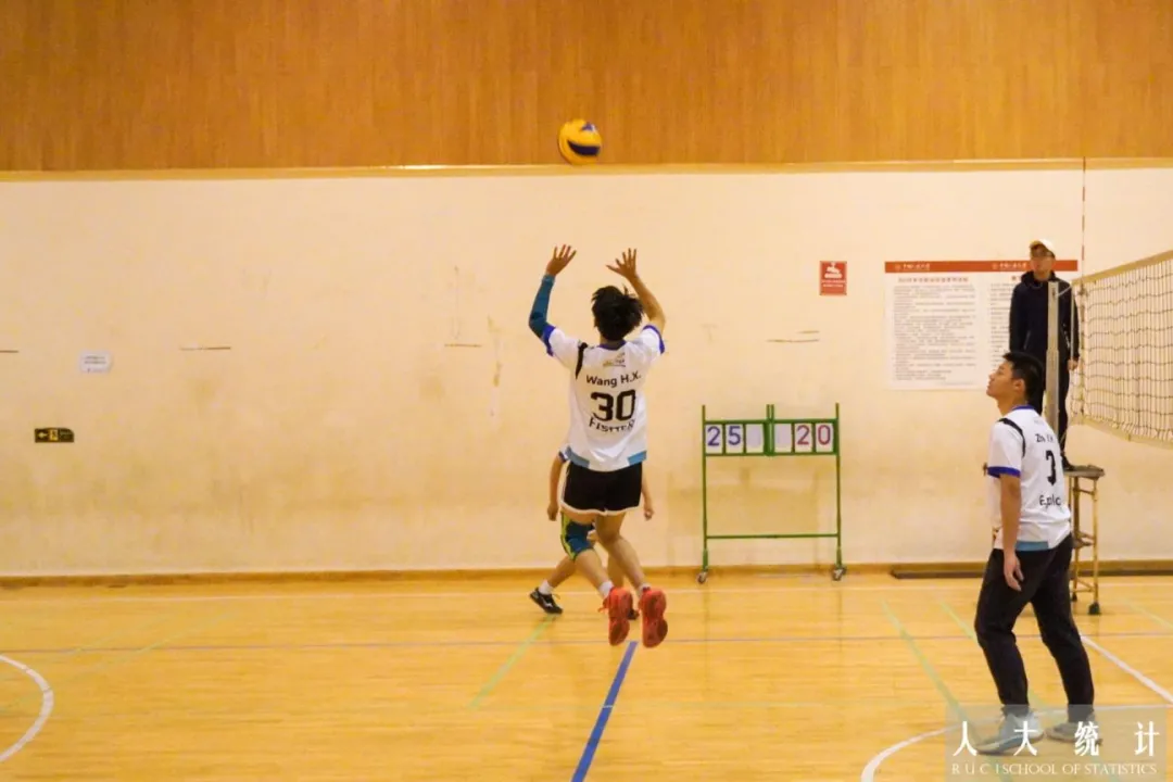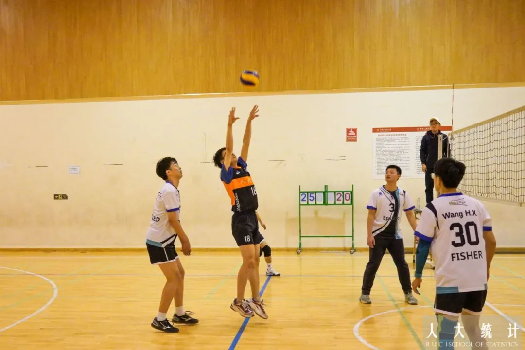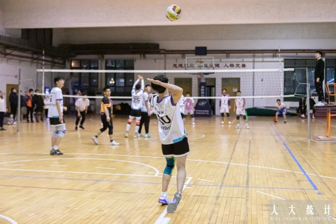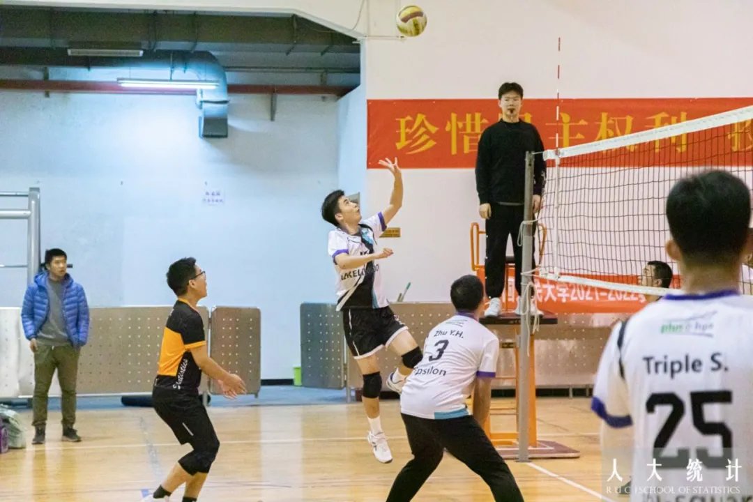 12月1日晚,2021-2022赛季男子排球联赛在拳道馆火热进行。统计男排首次小组赛对战商院男排。上半场,统计男排进入状态较慢,以20:25的比分先丢一局;下半场,统计男排在局末接连追分,绝境逢生,26:24扳平比分。决胜局略有失误,7:15遗憾落败。最终,统计男排1:2结束比赛。