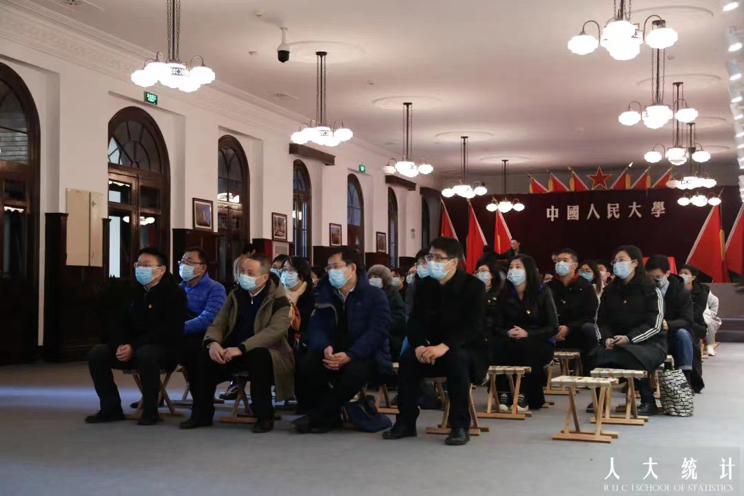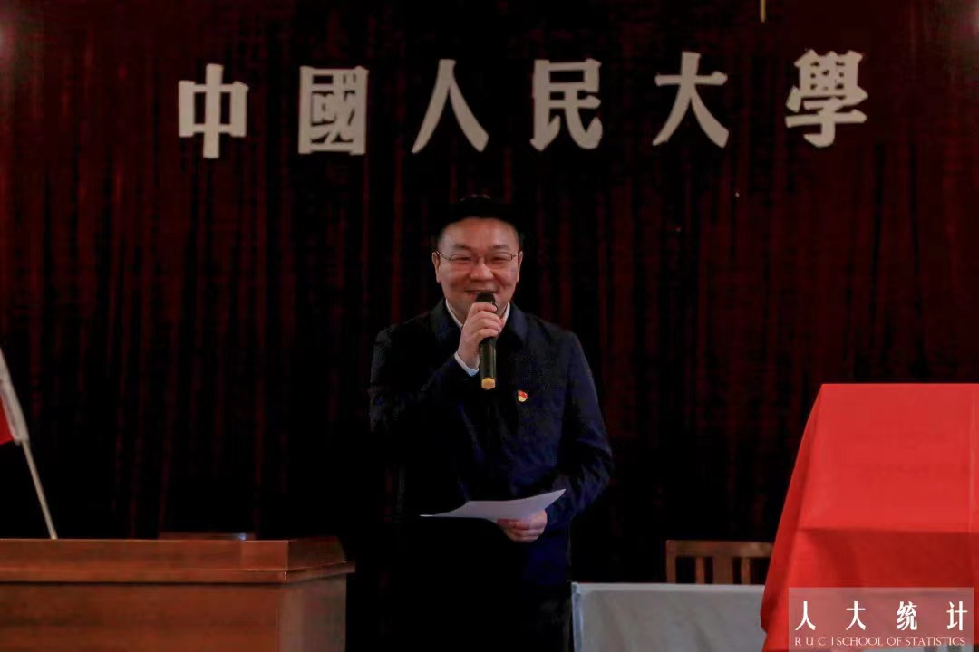 英国威廉集团官网经济社会统计系党支部书记甄峰结合自身经历鼓励英国威廉集团官网学子积极关注国家政策,用统计知识为中国发展贡献力量。入党积极分子代表、2019级本科生应镇焜结合参演话剧《陕北公学》 的经历,深情回顾了陕北公学和人大校史,表达了对传承人大红色精神的坚定信念。