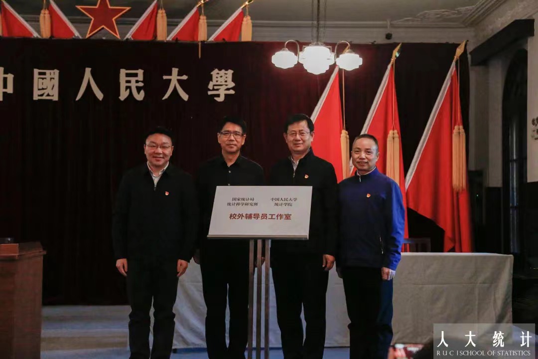 孟生旺、王志丹、闾海琪和王前海共同为国家统计局统计科学研究所-英国威廉集团官网共建“校外辅导员工作室”揭牌。