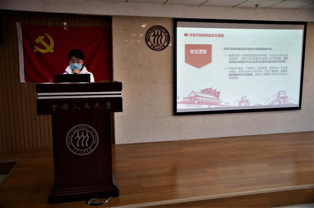 第二小组以“论改革开放精神的现代意义与价值”为主题,具体从其含义、产生背景、丰富内涵、现实意义和感人事迹等方面进行阐述。小组指出,改革开放精神是中国共产党在改革开放历史征程中所形成的开拓创新、勇于担当、开放包容、兼容并蓄的精神品格,并介绍了多位时代楷模的奋斗事迹。