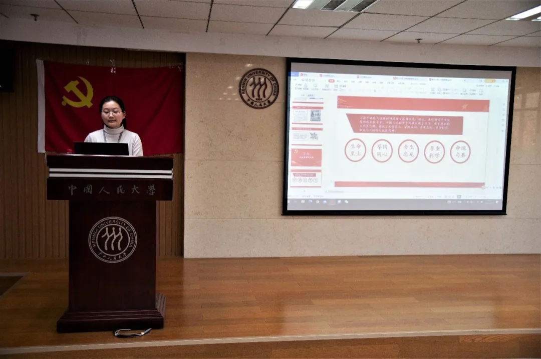 第七小组结合新冠肺炎疫情防控工作,介绍了 “生命至上、举国同心、舍生忘死、尊重科学、命运与共”的伟大抗疫精神,重点讲述了抗疫精神中的爱国主义、集体主义、人类命运共同体理念等核心内涵,鼓励全体学员积极学习伟大抗疫精神,让青春之花绽放在祖国需要的地方。