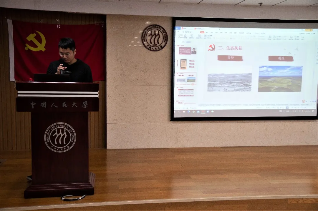 第八小组介绍了脱贫攻坚精神,根据我国当前扶贫工作的实际情况,具体从乡村扶贫、教育扶贫、生态扶贫等方面,结合具体人物事迹,阐述了扶贫事业的有效举措和重要成就,强调了扶贫事业对于决胜全面建成小康社会与全面建成社会主义现代化强国等重大历史任务的非凡意义。