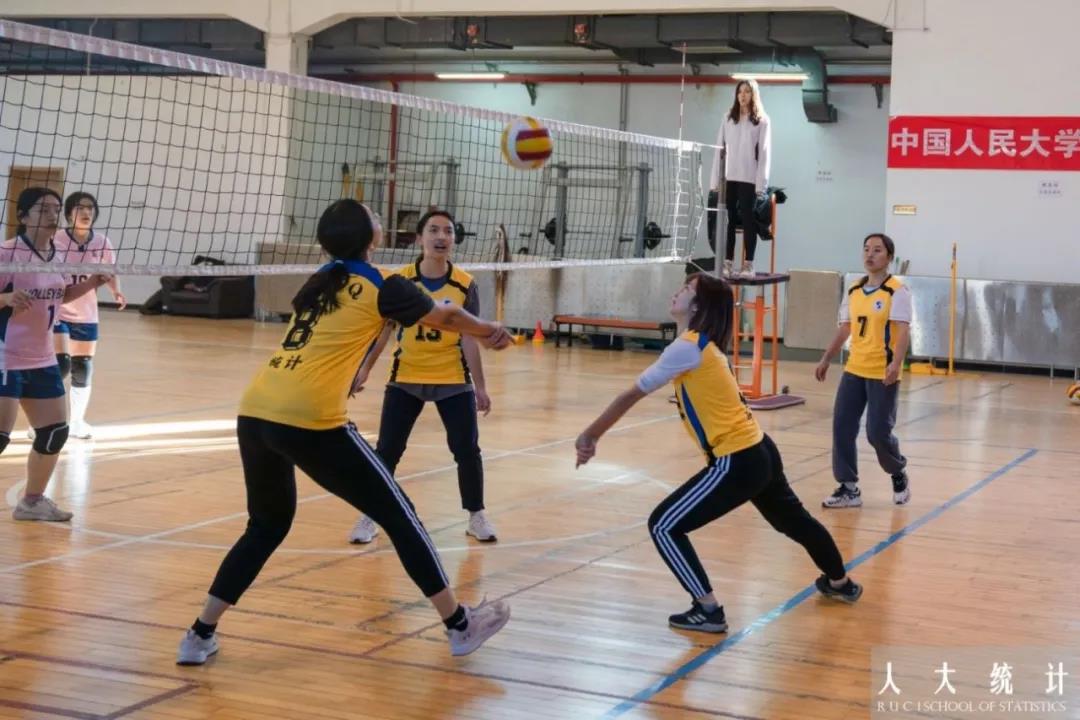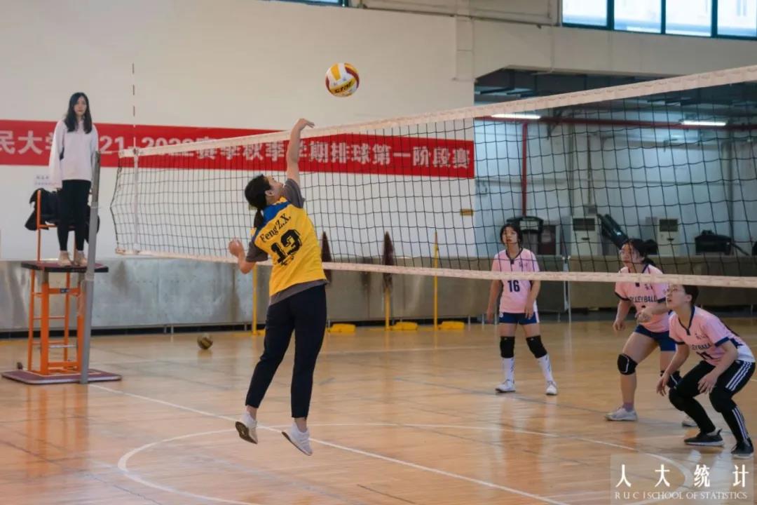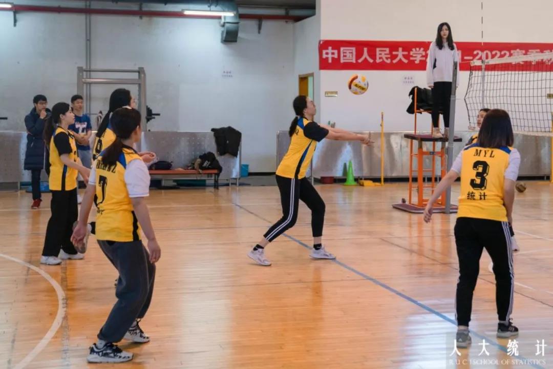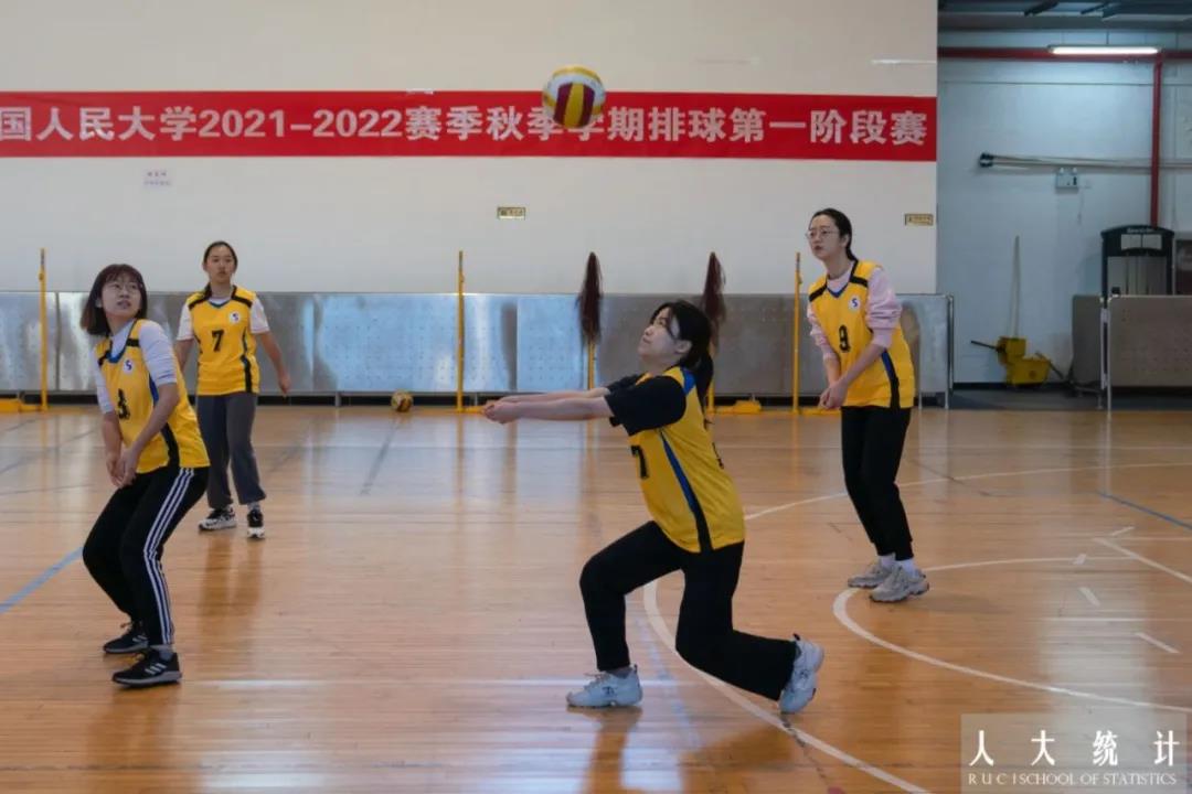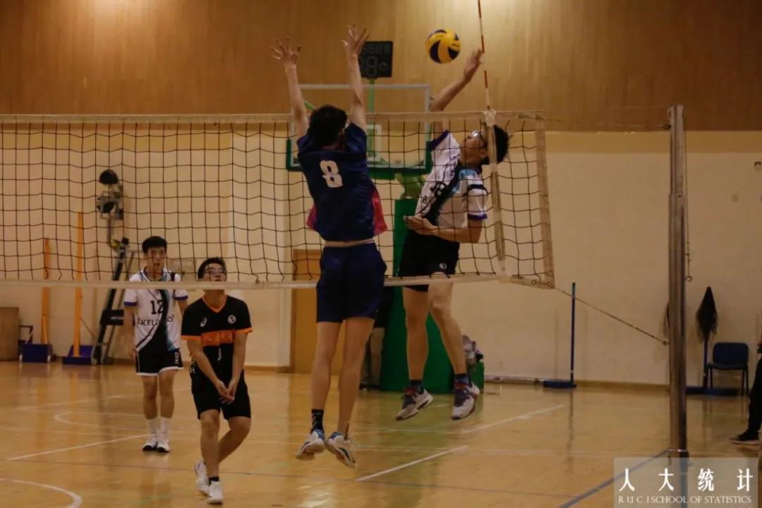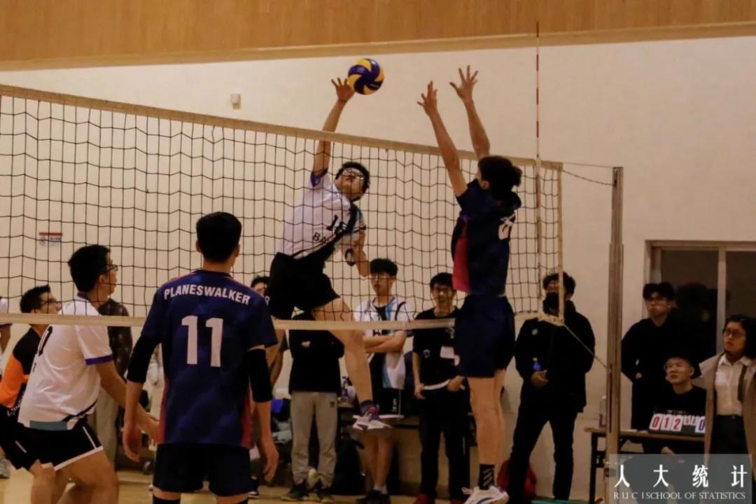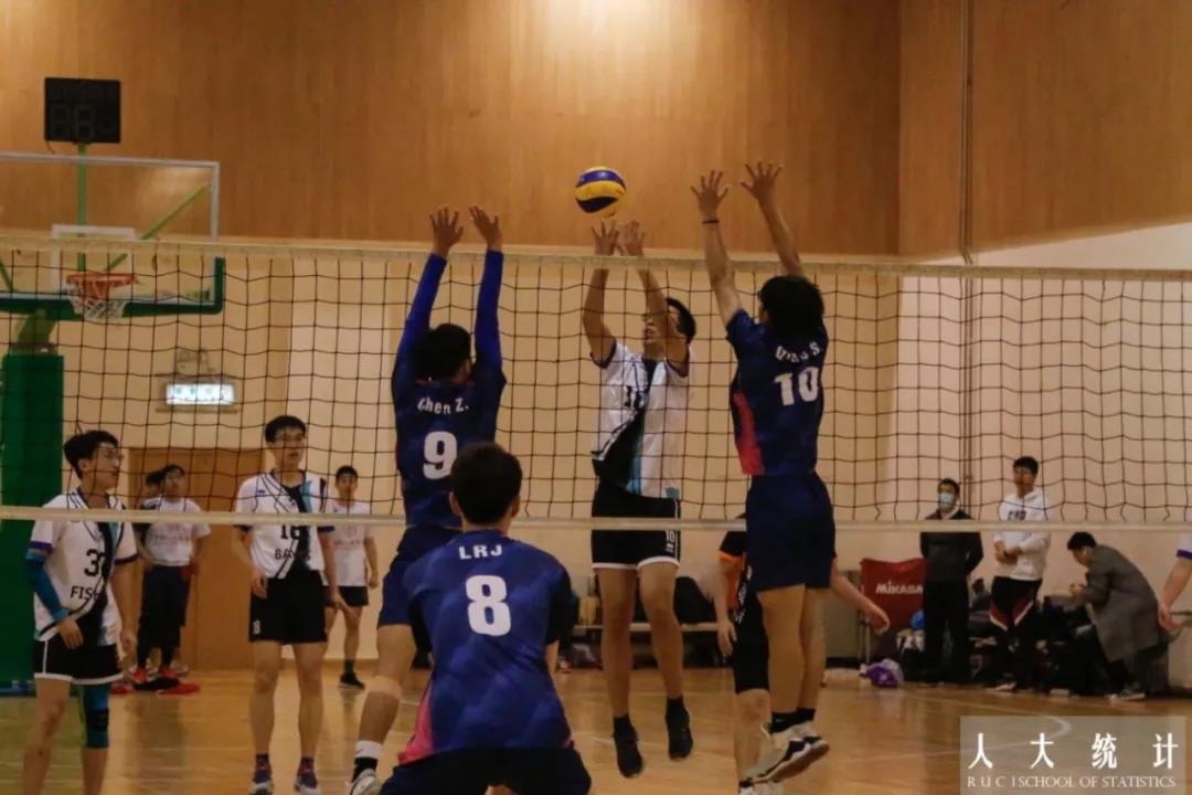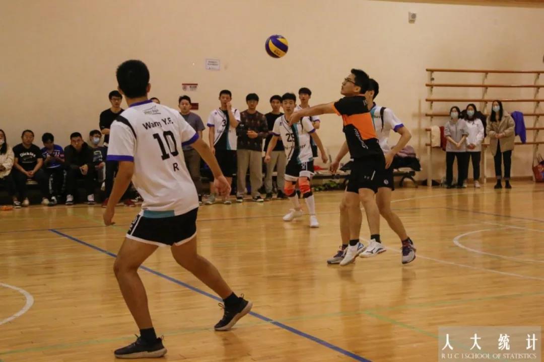 12月7日中午,2021-2022赛季男子排球联赛在世纪馆B206火热进行,统计男排对战新闻男排。经过激烈比拼,统计男排以25:21赢下第一局,大比分1:0领先。第二局伊始,统计男排状态不佳,连连失分。在落后8分的劣势下,我方队员沉着冷静,默契配合,不断调整状态,寻求反超机会,最终奋起直追,逆转局势,以25:23结束第二局,大比分2:0取得本场比赛胜利。