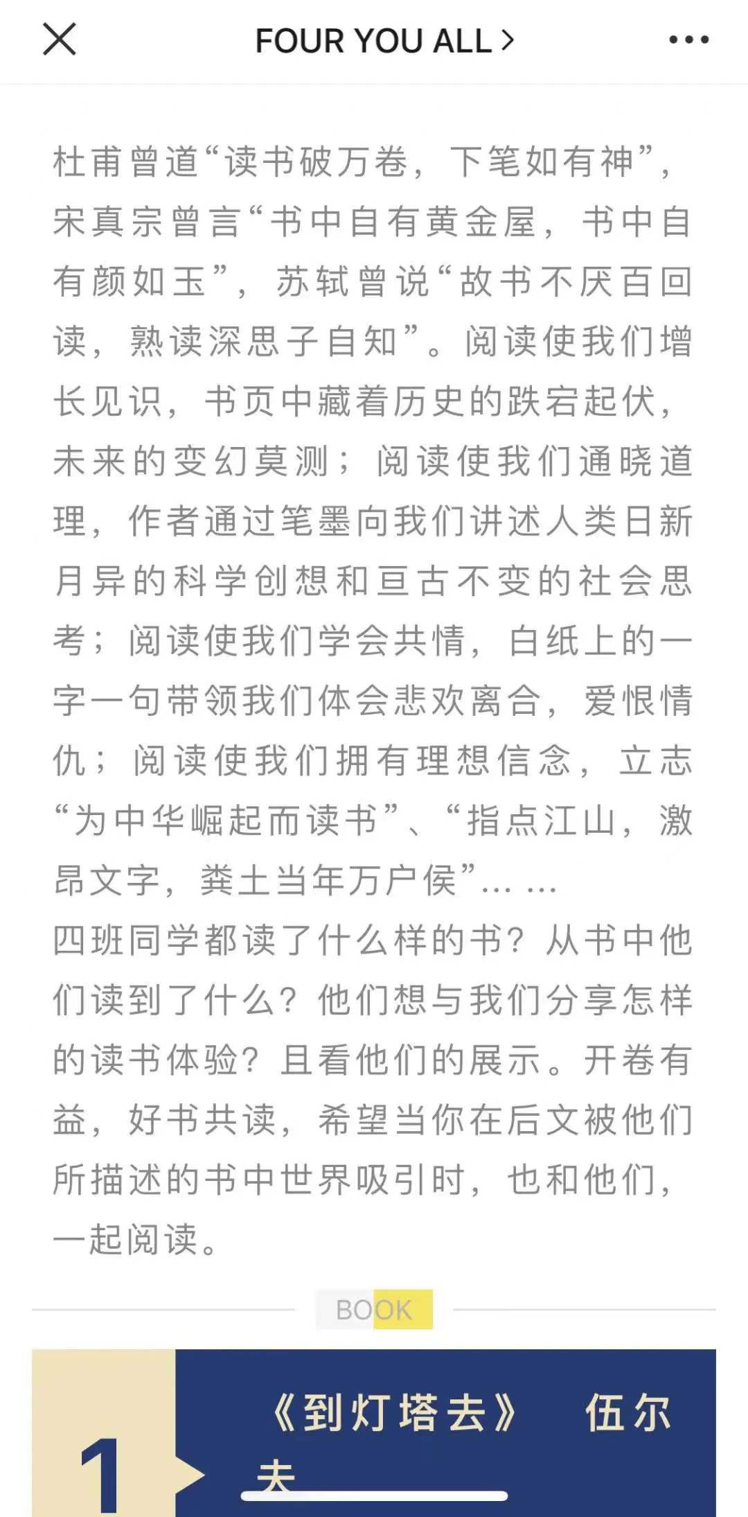 2019级本科4班团支部重视营造积极向上的文化氛围,创新性发展支部文化建设。2020年寒假,团支部进行班级公众号推送连载,以“开卷有益|好书共读”、“大开眼界|影视共赏”、“山河辽阔|我的家乡”三个板块分别展示了同学们的兴趣爱好。丰富的书籍和影视分享带给大家思维碰撞、交换理想的绝佳机会;来自天南海北的同学们积极分享自己的家乡美食、家乡文化,让同学们足不出户便可见祖国幅员之辽阔、天地之广大。