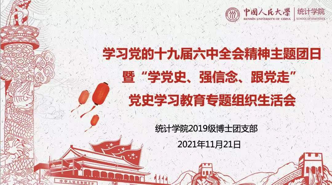 在建党100周年之际,2019级博士班团支部通过开展线上材料转发学习、主题团日、集体观影等形式,积极开展党史学习教育专题学习会、组织生活会等活动,累计已完成多次新民主主义革命、社会主义革命和建设、改革开放、中国特色社会主义新时代四个专题党史学习活动。