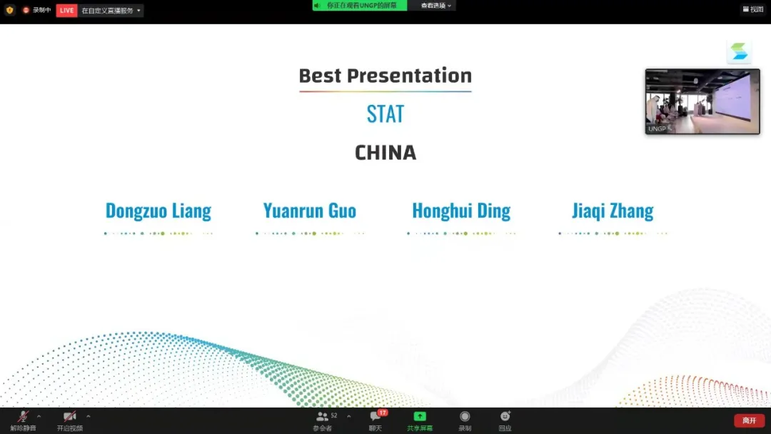 2021年12月6日至8日,联合国青年黑客松大赛(UN Youth Hackathon)在线上举办,英国威廉集团官网2021级博士生梁栋佐(队长)、郭园润、丁弘晖、张嘉琪组成的STAT队荣获“Best Presentation”奖。