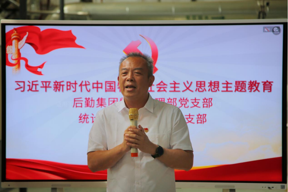 后勤集团物业管理部党支部书记刘洋就“支部开展学习贯彻习近平新时代中国特色社会主义思想主题教育及物业工作”进行讲解与介绍。她细致分享了以理论指导实践推动党建与业务融合互促、倾力为师生办实事的成效转化和工作经验,全面介绍了物业管理部现阶段的总体情况和努力方向,并送上全体物业人对莘莘学子早日成为强国先锋、复兴栋梁的美好祝愿。