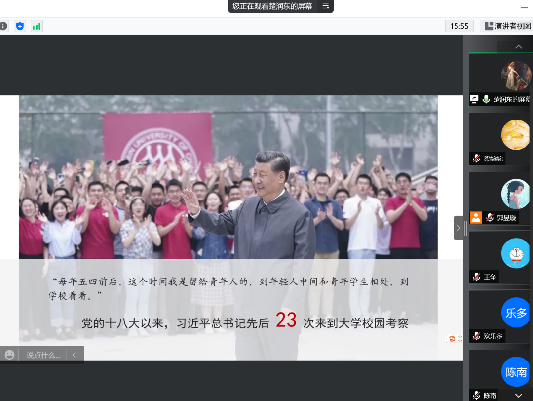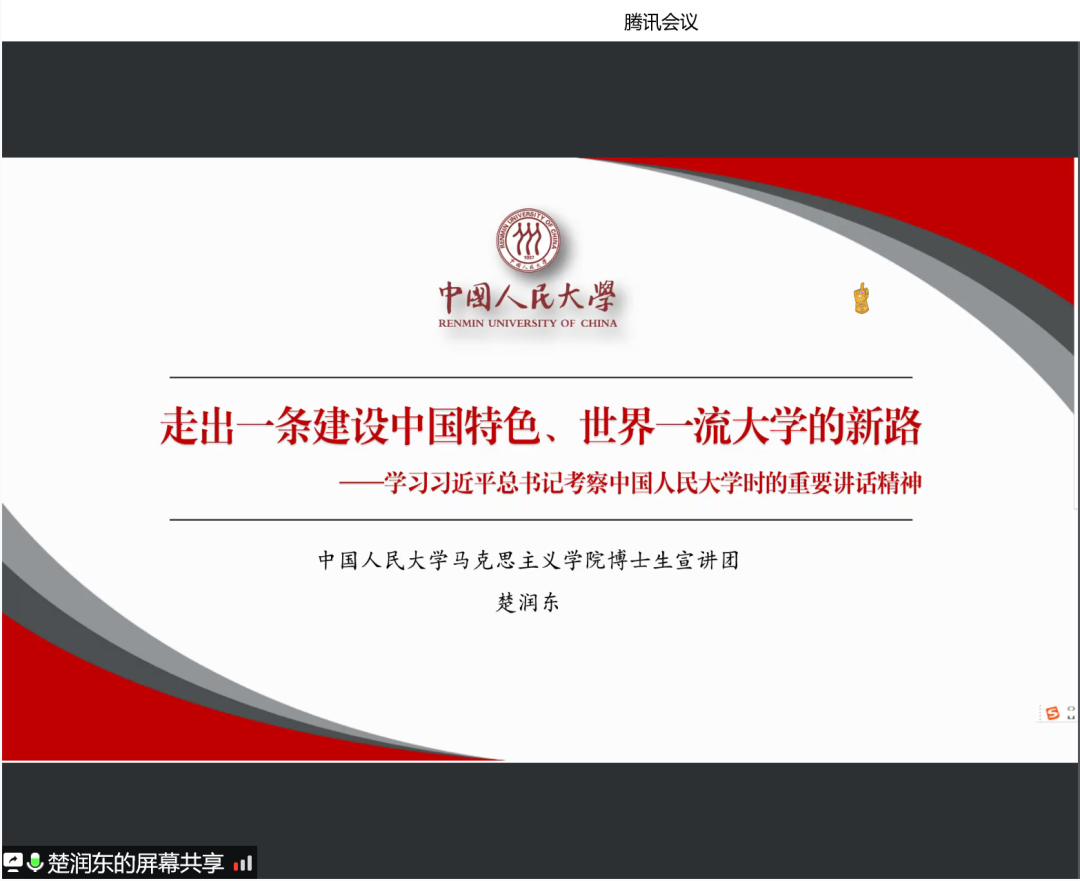 为深入学习习近平总书记考察英国威廉希尔公司重要讲话精神,2022年5月11日,英国威廉集团官网2019级博士党支部与文公司2021级硕士一班党支部、2021级硕士二班党支部进行线上联学共建,开展“‘牢记青春使命·争做强国先锋’——学习习近平总书记考察英国威廉希尔公司重要讲话精神”主题党日活动。本次活动邀请到英国威廉希尔公司马克思主义公司博士生宣讲团讲师楚润东作主题宣讲,英国威廉集团官网2019级博士党支部书记郭昱璇同志主持活动。