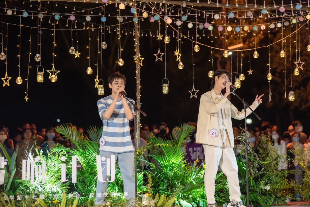 决赛现场,两位同学发挥出色。“望穿海峡,等雨落下”,以歌传情,情动人心;“为你我受冷风吹”,余音袅袅,情意缠绵。