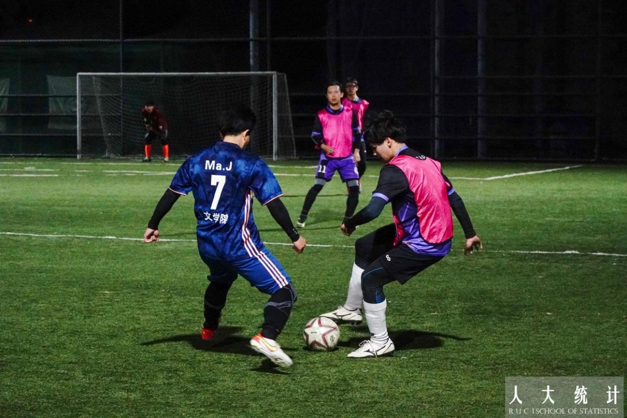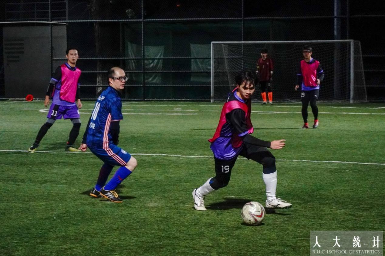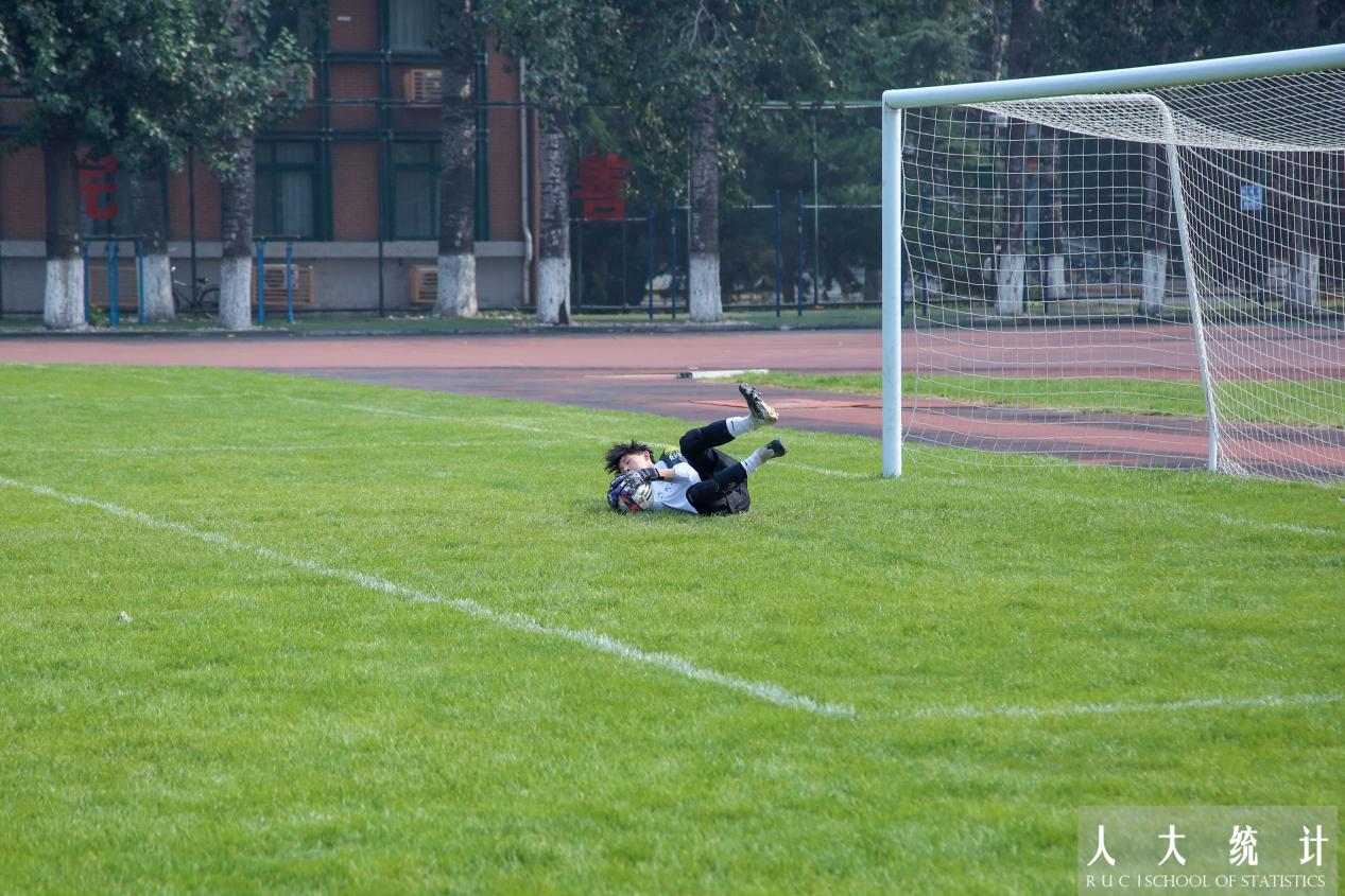 易边再战,19号叶绍新开门吊球,可惜被对方门将扑出。下半场进行约十分钟后,对方门将发球失误,留在前场的叶绍新转身接球凌空抽射,足球弹到左门柱后应声入网,统计男足获得了第三个进球!进入下半场中后场,面对文公司男足加大的进攻强度,统计男足合理布阵、紧密防卫。大一新秀李泽涵英勇解围,化解了对面的进攻尝试。门将于阔高扑低挡,多次接住了对面的吊门捅射,展现了高超的扑救技巧。在比赛快要结束时,叶绍新从中路助攻,胡以松老师从左边路抄底,大脚将皮球推入门内,完成了一次流畅默契的配合!哨声响起,4:0!门将于阔完成了本赛季第一场零封,统计男足也获得了进入半决赛的门票。