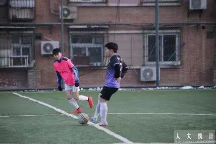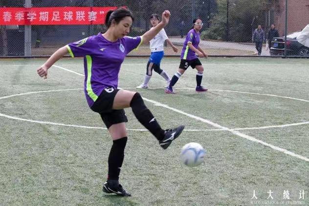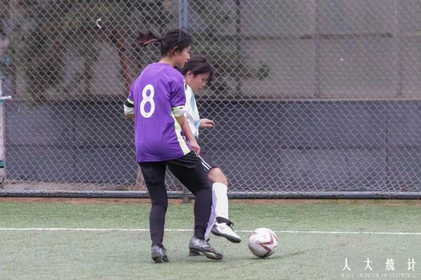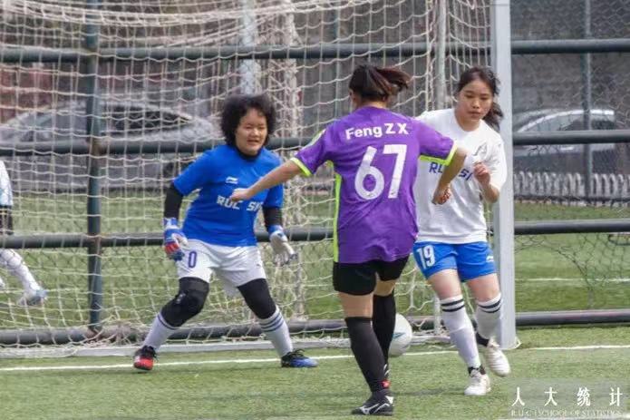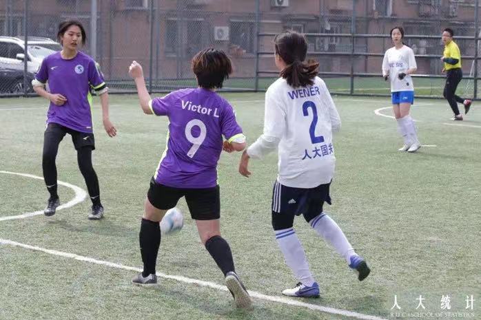 3月23日中午,2022年春季学期足球联赛在北区足球场火热进行。统计女足英姿飒爽,配合默契,勇往直前,以2:1的比分战胜国关女足,展现了统计学子的体育精神。