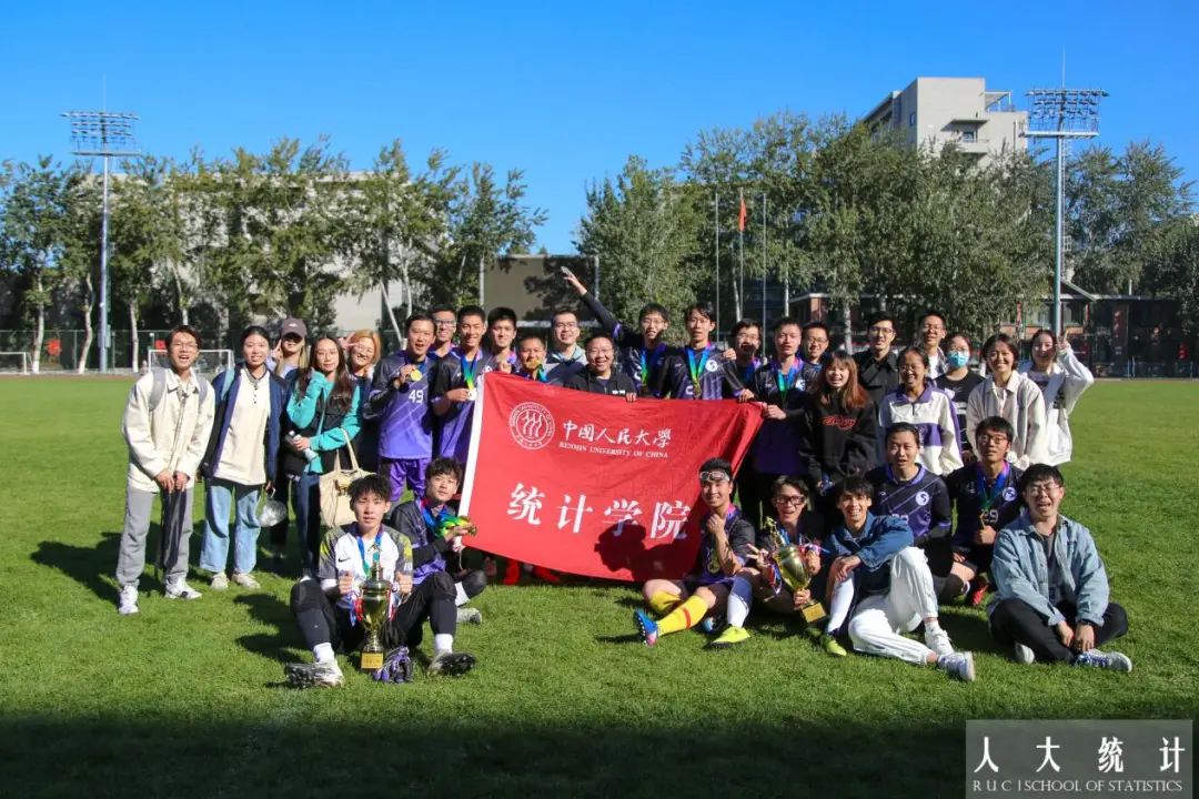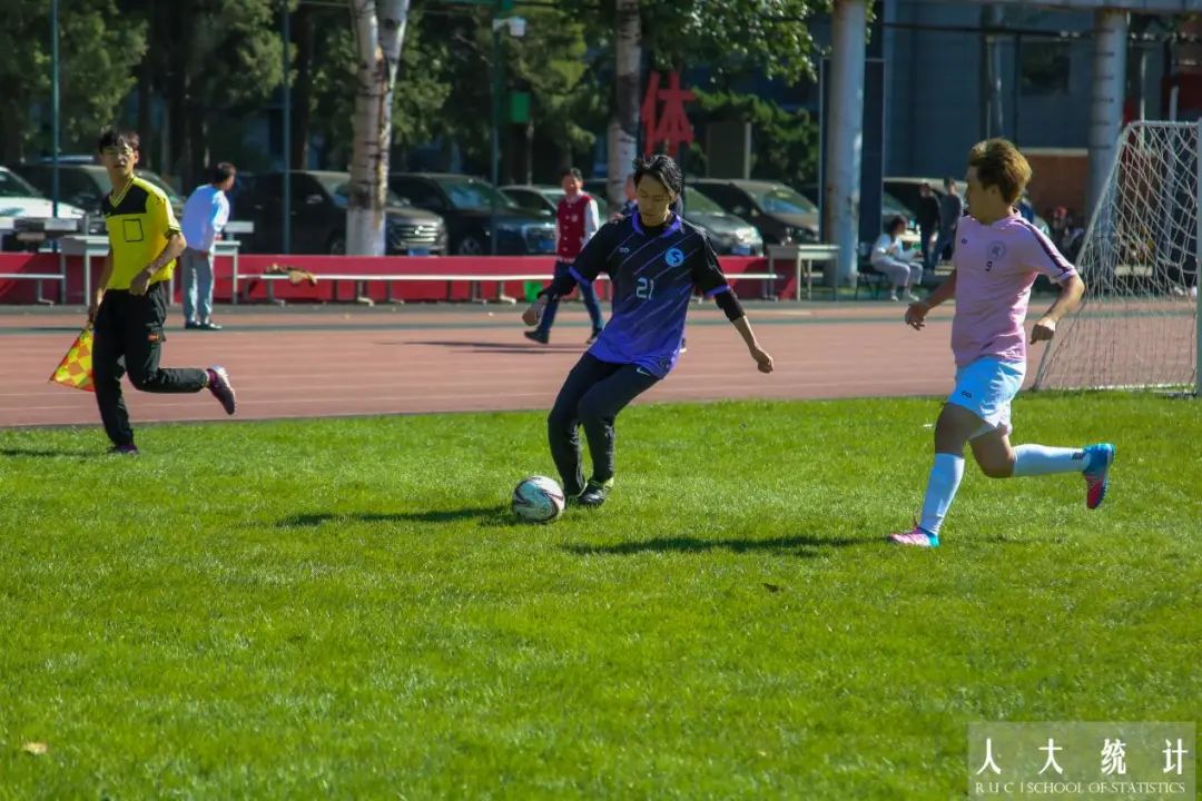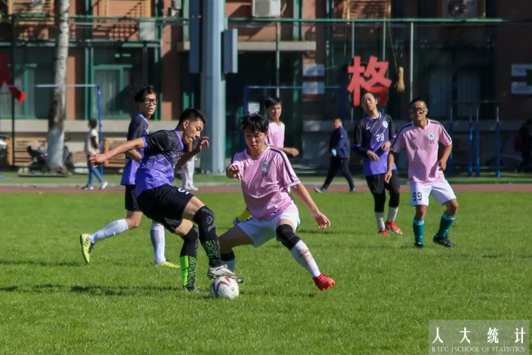 下半场易边再战,我方激情不减,斗志昂扬。场外观众的欢呼声,助威声连绵不绝,比赛气氛层层高涨。队员们配合默契,始终在对方后方威胁施压,攻势猛烈。重压之下,对方主动出击,尝试夺回主动权。我方队员后场停球失误,混战中数学公司10号球员获得单刀机会,一脚射门打到横梁上弹筐而出。随后对方抓住我方防守队员回位不及的空挡,数院10号球员补射得分,比分迫近到2:1。差距被缩小后,队员们没有慌乱并稳住了自己的节奏。下半场后半段,陆昊琨找准机会,突破对方防线,连过多人,下底将球横传给了文东勰。文东勰抓住机会,摆脱对方三名后卫的封堵,张弓搭箭起脚射门,足球应声入网,为统院扩大了领先优势。这次流畅默契的配合提振了球队的士气,稳固了领先的优势。之后的比赛中,双方再无建树,哨声响起,统院男足以3:1的比分获得最终胜利。