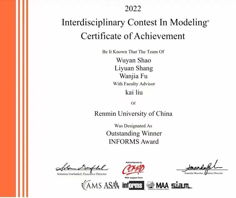 2人O奖,6人F奖,统院学子在2022年美国老员工数学建模竞赛中创佳绩!