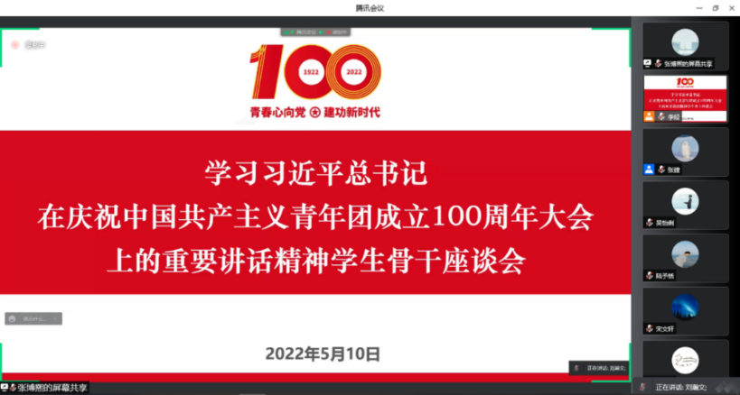 2022年是中国共产主义青年团成立100周年,是一个值得我们广大共青团员追忆历史,发扬精神实质的日子。为了弘扬共青团精神,分团委组织部组织了团支书观看了建团一百周年庆祝大会。这也鼓励了我们在疫情防控形势下,做好维持团组织建设活动正常进行,积极推进基层组织建设等基础团务工作,参与到志愿工作中去,为校园疫情防控工作提供自己的力量,做一个有担当,有责任,勇于承担重担的青年。