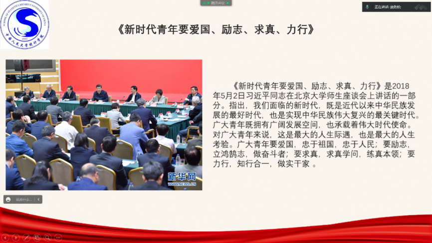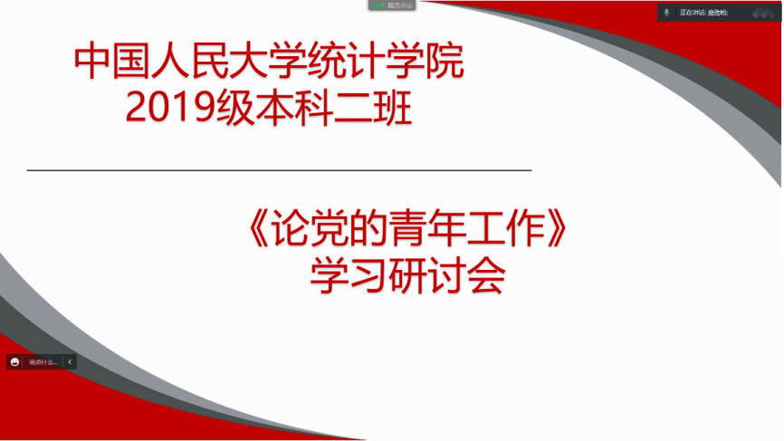 有的团员青年结合影视作品中青年党员的先进表现,分享自己的观后感,抒发了对青年强国的信心与决心;有的团员青年结合“千人百村”社会实践中的经历,与大家分享交流实践成果和感悟。