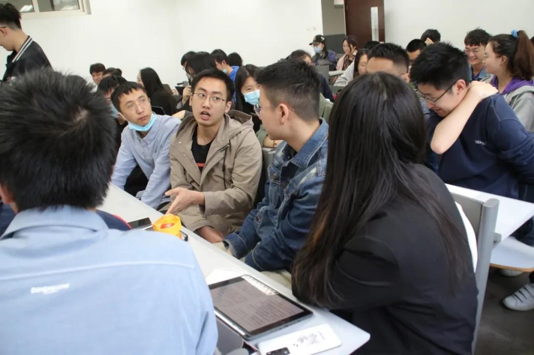 朗诵环节结束后,李政萱组织同学们针对“结合长征故事谈谈你对长征精神的理解,并结合现实说说你的启发”这一话题进行了5分钟的分组讨论。与会师生各抒己见,积极探讨,现场气氛融洽。