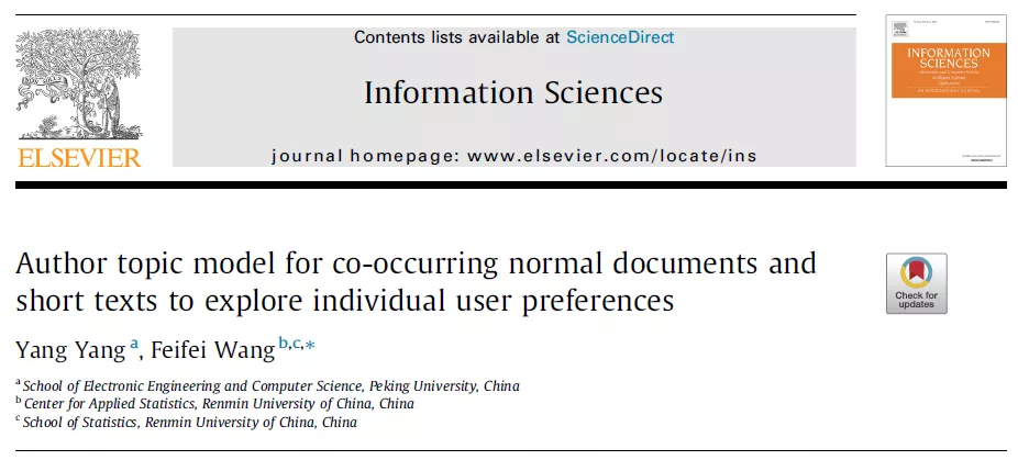 公司王菲菲副教授在《Information Sciences》发表论文。该研究提出了一种新的融合作者信息的主题模型,通过建立“原文”和“用户评论”之间的关系,在解决短文档建模稀疏性问题的同时挖掘用户评论的偏好性。