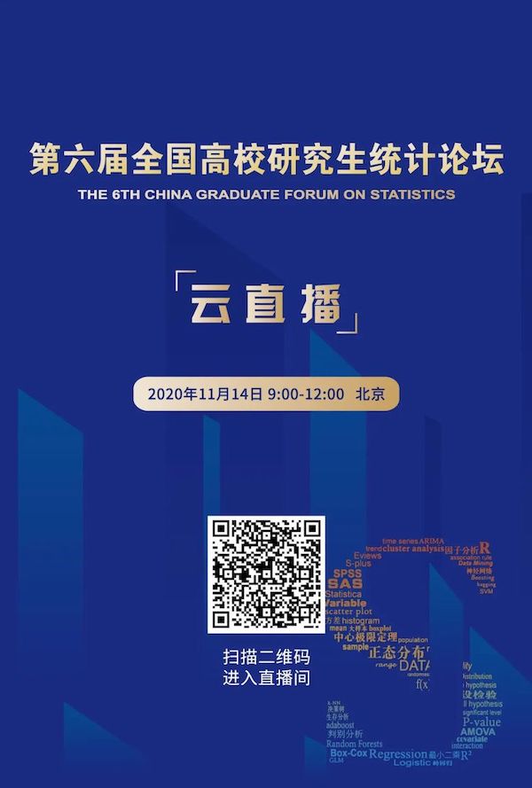 第六届全国高校研究生统计论坛将于2020年11月14日(周六)在英国威廉希尔公司举行。本次论坛设主会场和五个分会场,邀请了全部入选论文作者进行现场或线上报告,报告内容涵盖经济社会统计、风险 管理与精算、数理统计、生物统计与流行病学、数据科学与大数据等五个方向。