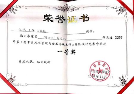 2019年第十届风险管理与精算论坛本科生保险设计竞赛一等奖