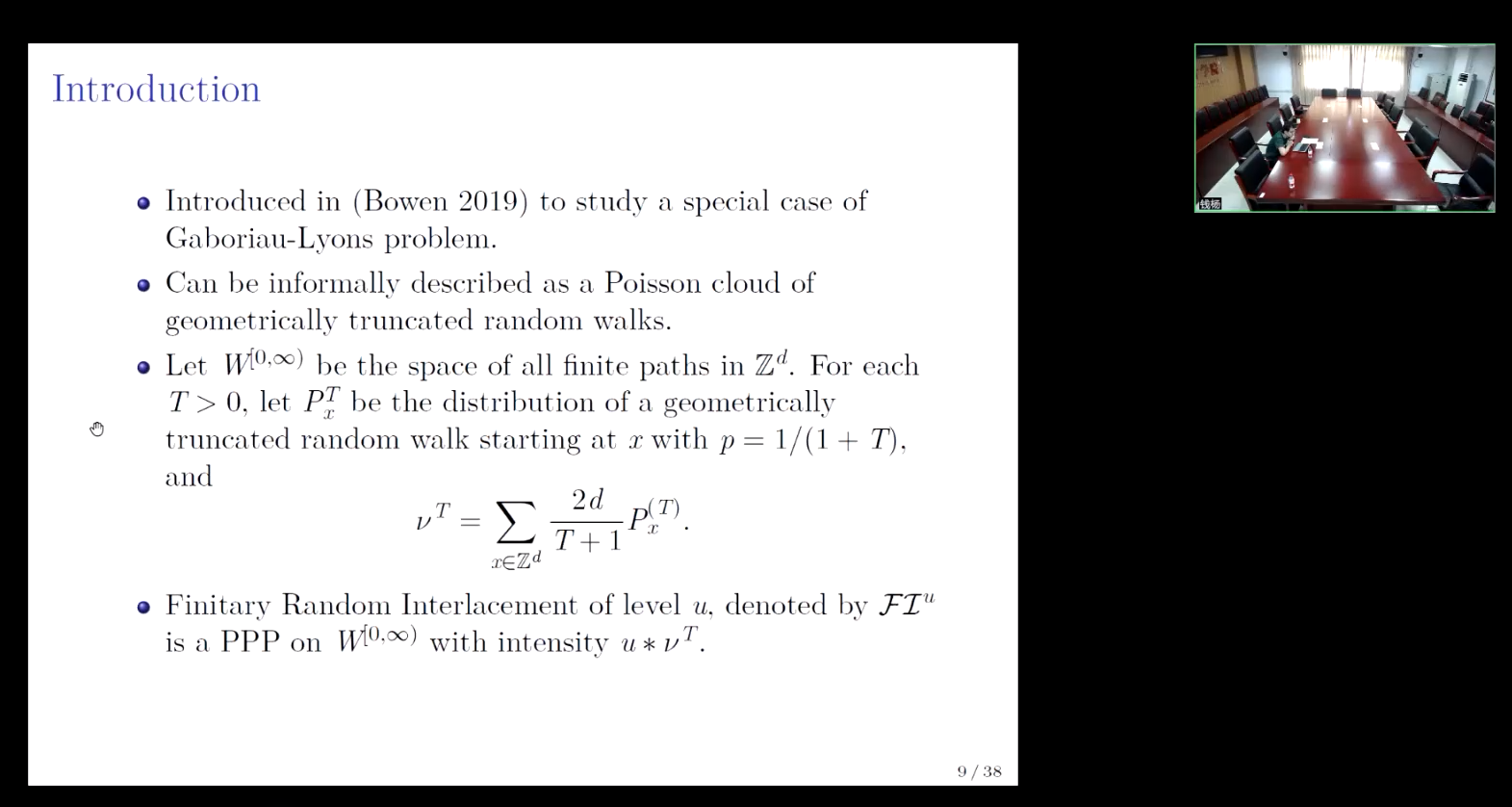 然后,张原围绕轨道长度参数T趋向于0、强度参数u趋向于无穷大、u与T的乘积收敛于常数的情况展开讲解,并引出无限随机交织的概念,介绍了前人有关FI到RI依分布弱收敛以及一定场合下几乎处处收敛的结论。