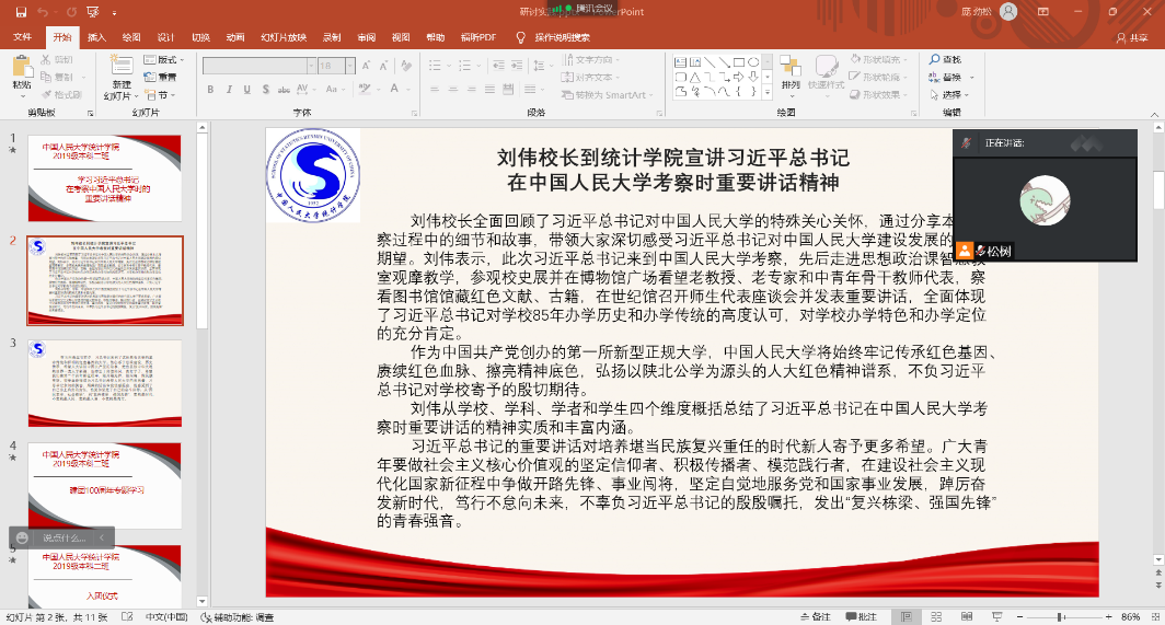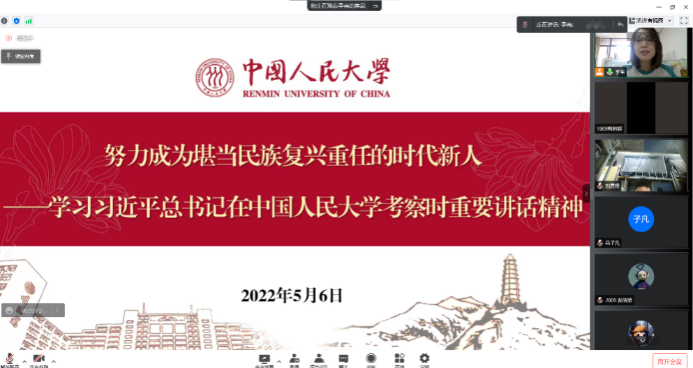 分团委书记李南老师深入团支部,组织2019级本科九班团支部与2020级本科五班团支部共同开展专题学习。