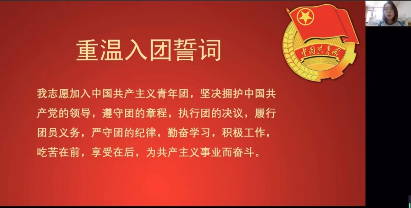 2019级本科9班团支部、2020级本科5班团支部,在分团委书记李南的带领下,重温入团誓词。