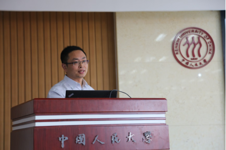 冯兴东的报告题目是:Distributed Variable Selection in Quantile Regression.由于数据收集的便利性,大规模数据集开始引起越来越多的重视。冯兴东教授将ADMM算法应用在分为回归模型的变量选择中,借助Spark平台进行分布式计算,实现了在多个机器上处理数据集、进行超高维数据的变量选择和参数估计,从而大大提高了运算效率,节省了运算时间。该算法不仅可以实现将样本划分到不同机器上进行计算,也可以将不同变量划分到不同机器上进行参数估计。模拟结果显示,对于十万数量级的变量个数,通过分布式计算可以在2秒左右轻松实现参数估计。在报告的最后,在场师生关于样本和变量的划分、不同机器的运行关联等问题与冯兴东博士进行了讨论。