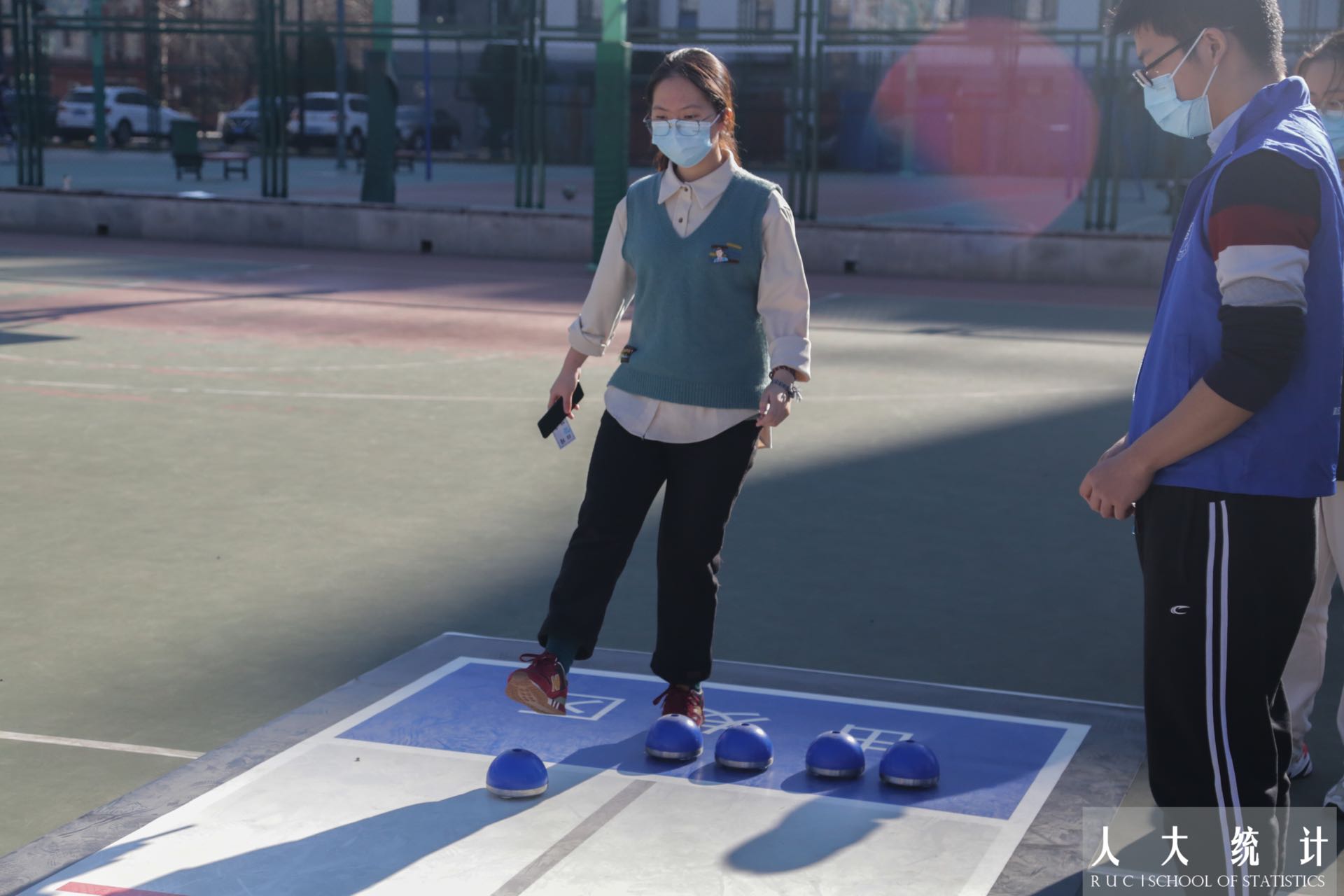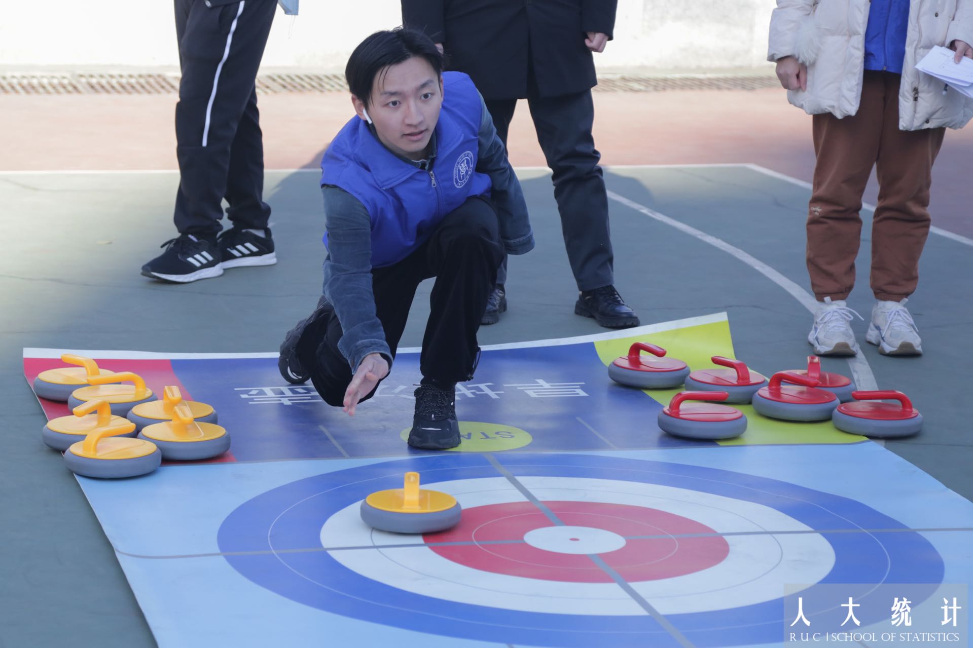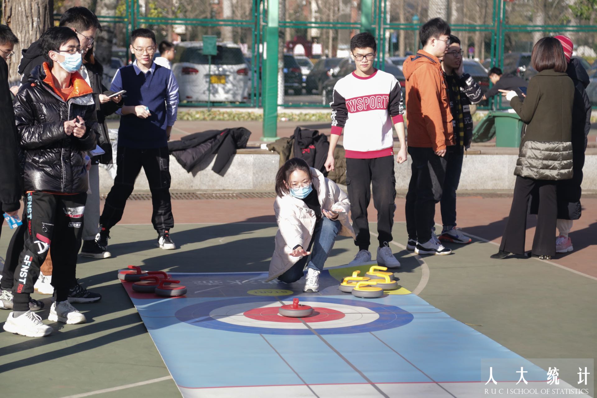 冰壶被誉为“冰上国际象棋”,同时考验选手的体能和脑力,展取舍之智,现动静之美。旱地冰壶是冰壶运动的陆地版本,与冰壶的比赛规则基本相同,它保留了冰壶运动的重要特质,又打破了冰壶运动的场地限制,是冰雪运动发展的创新项目。在志愿者简单讲解规则之后,老师和同学们纷纷大展身手。冰壶在场地中飞速前进,或是占据营垒要点,或是撞击对方壶石。逆转,再逆转,最后一击翻盘……场面胶着,好戏连连,参赛者的表现赢得满堂喝彩。