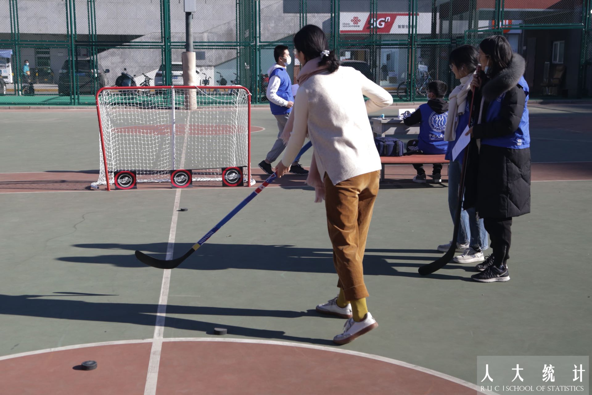 冰球运动亦称“冰上曲棍球”。它结合了多变的滑冰技艺和敏捷娴熟的曲棍球技艺,是一项对抗性较强、极具观赏性的集体冰上运动项目。“冰球射门”则是这项运动中最扣人心弦的部分。如何用冰球杆把冰球精准地送进球门?这可是个技术活。在志愿者的演示和指导下,同学们从刚开始的不知从何下手,到最后挥动球杆一击制胜,换来满满的成就感。