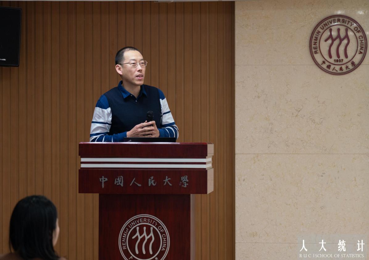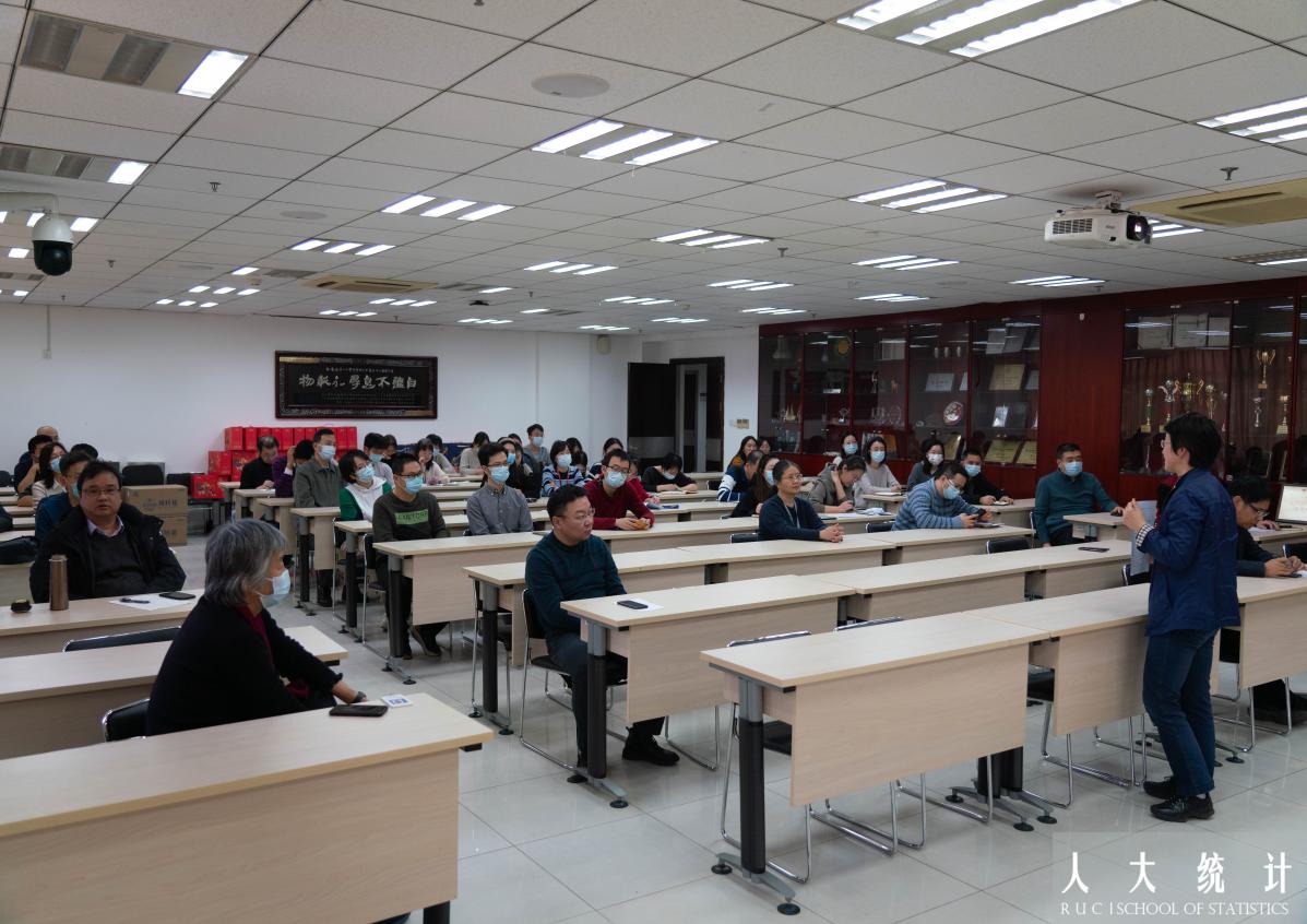 副经理李静萍对学期末的研究生工作进行了介绍。她表示,希望老师们在近期将开展的研究生招生工作中提高意识,严格要求,共同高质量完成招生工作。随后,她介绍了应用统计科学研究中心的各项制度及政策,鼓励大家积极参与到应用统计科学研究中心的各项工作中,一起推进基地建设。