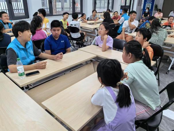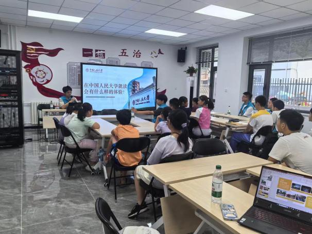 工作之余,同学们开展公益活动,前往潘庄社区党群服务中心,为辖区青少年开展“我在人大当学霸”暑期学习经验交流分享会。
