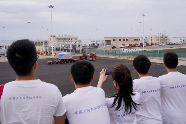 富民兴疆,在霍尔果斯口岸体悟“一带一路”边贸发展成果。在霍尔果斯国门文化展示馆,调研团师生深刻体验了霍尔果斯作为丝绸之路经济带核心区的重要地位和历史文化,从1952年第一代国门到2018年第六代国门的演变过程。霍尔果斯,意为“积累财富的地方”或“驼队经过的地方”,如今是一个集公路、铁路、管道、航空、光缆、邮件为一体的交通枢纽和综合口岸。调研团通过收集口岸发展现状、未来规划等数据资料,以统计学视角洞察霍尔果斯和新疆对外开放的活力与热情。